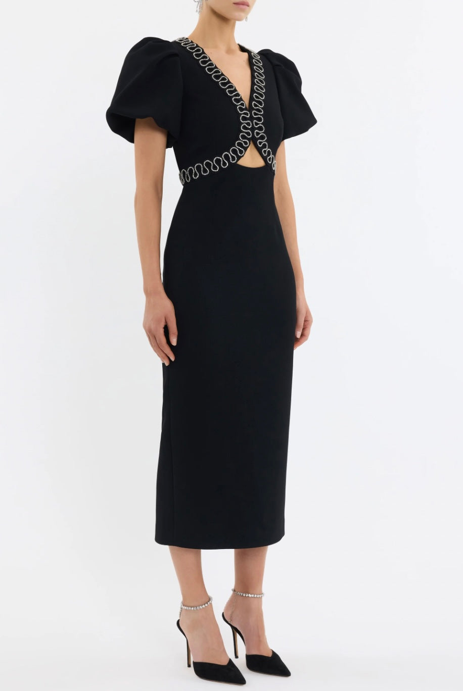 Rebecca Vallance Nyx Puff Sleeve Midi | Black