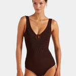 Hunza G Coverage Celine Swim With Tonal Hoops | Metallic Chocolate