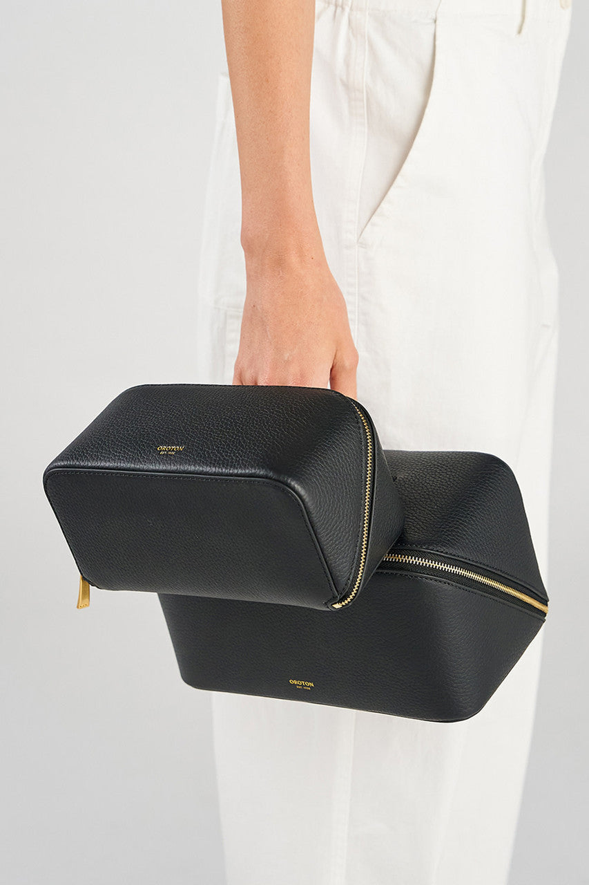 Keep your beauty essentials chic and organized with the Oroton Fife Large Beauty Case. Crafted from pebble leather with a durable nylon lining, this luxe beauty case features a top zip closure, interior pocket, and easy-clean lining. Finished with a top handle and brass hardware, it’s perfect for travel or home.