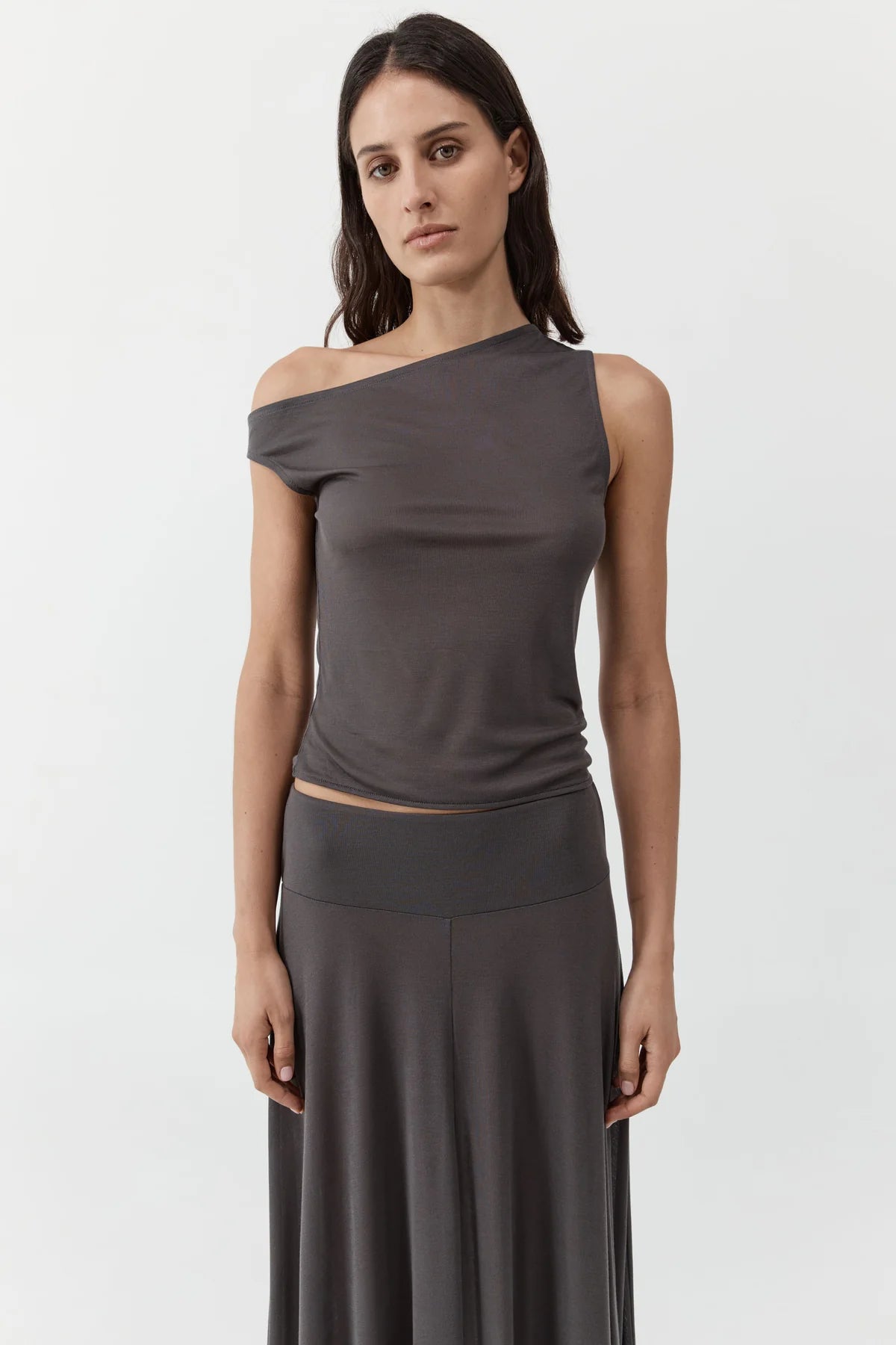 St Agni Fine Jersey Asymm Top | Soot