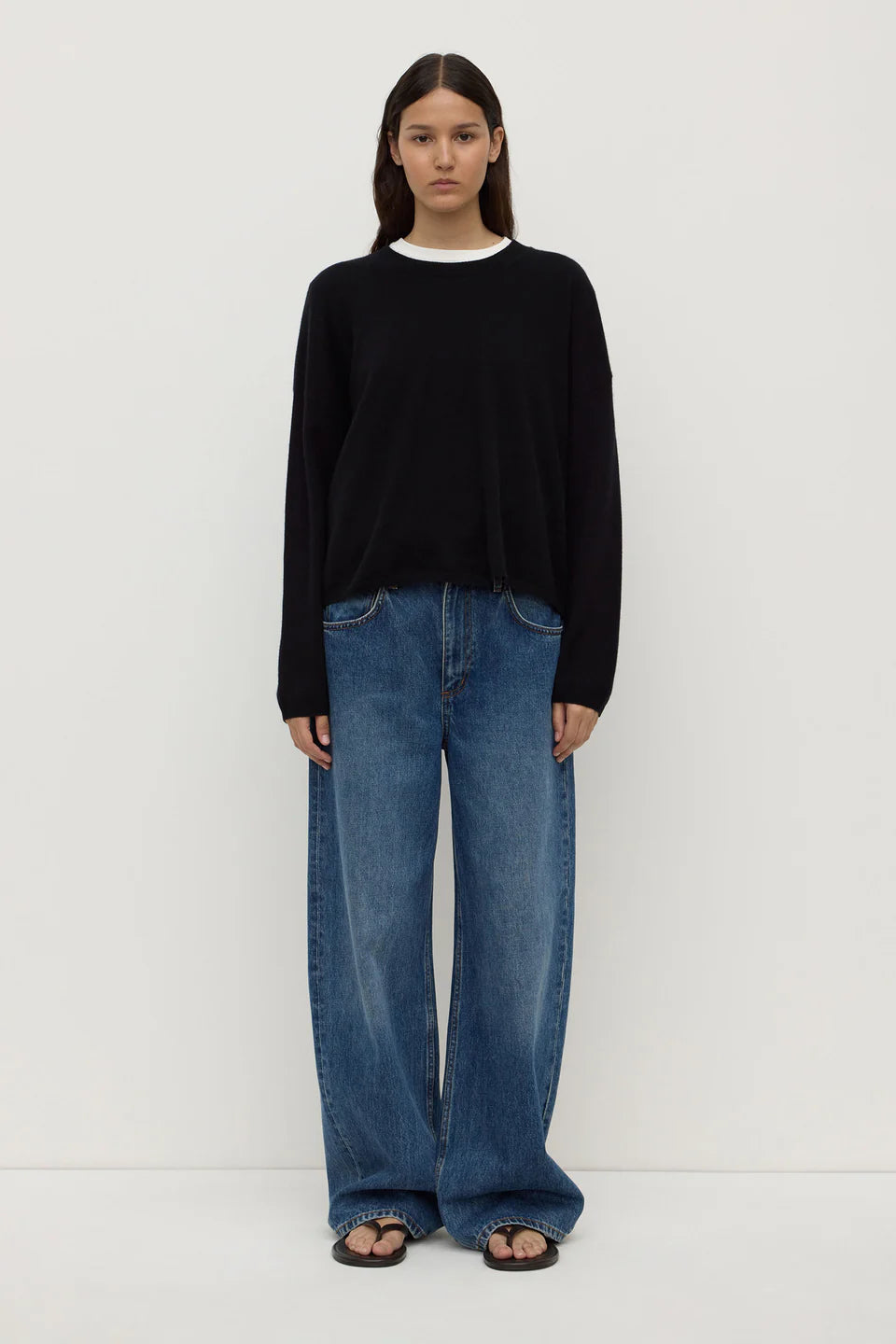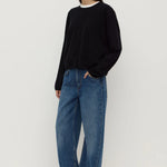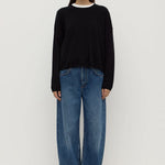 The Odelle Cashmere Knit in Black is a 100% cashmere knit with a boxy silhouette, perfect for layering, and dropped shoulders.