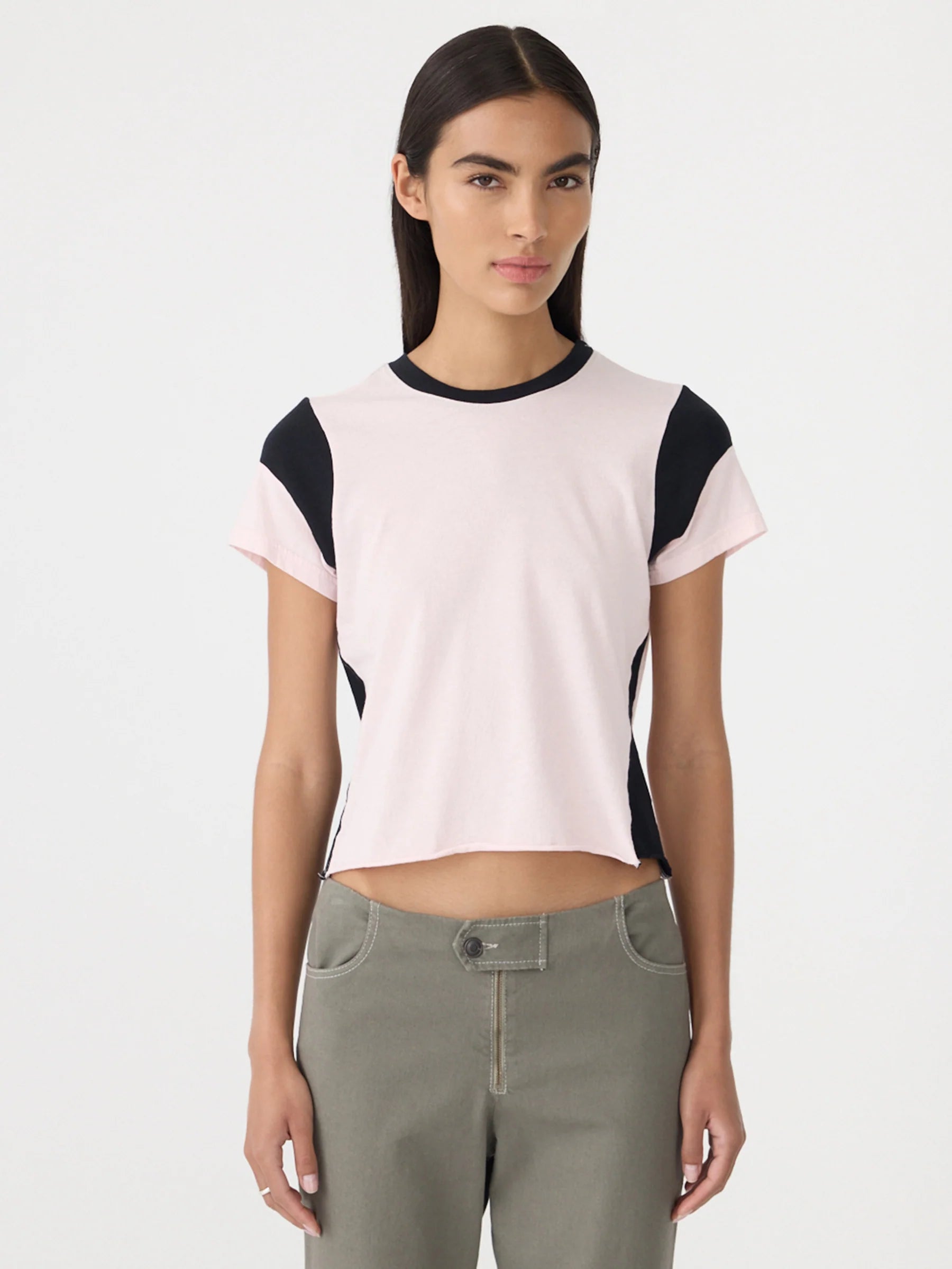 Bassike Moto Baby T-Shirt | Powder Pink/Black