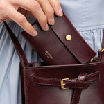 The Margot Keyring Pouch is a compact and versatile style crafted in smooth leather with PU lining. Designed to carry cards or small essentials, it features a press-stud closure, foil-embossed logo and keyring attachment—perfect for attaching to bags or slipping into a pocket.