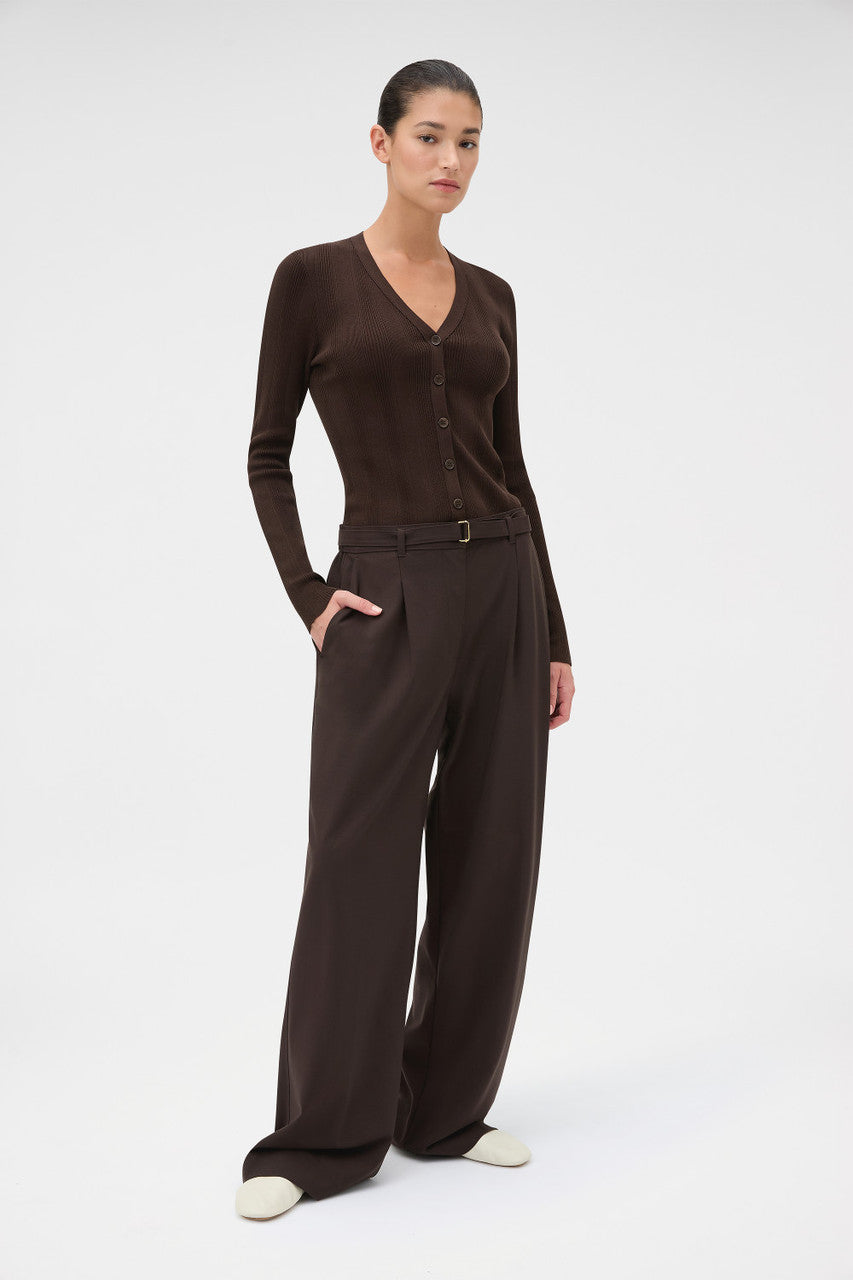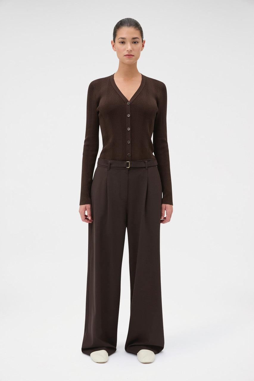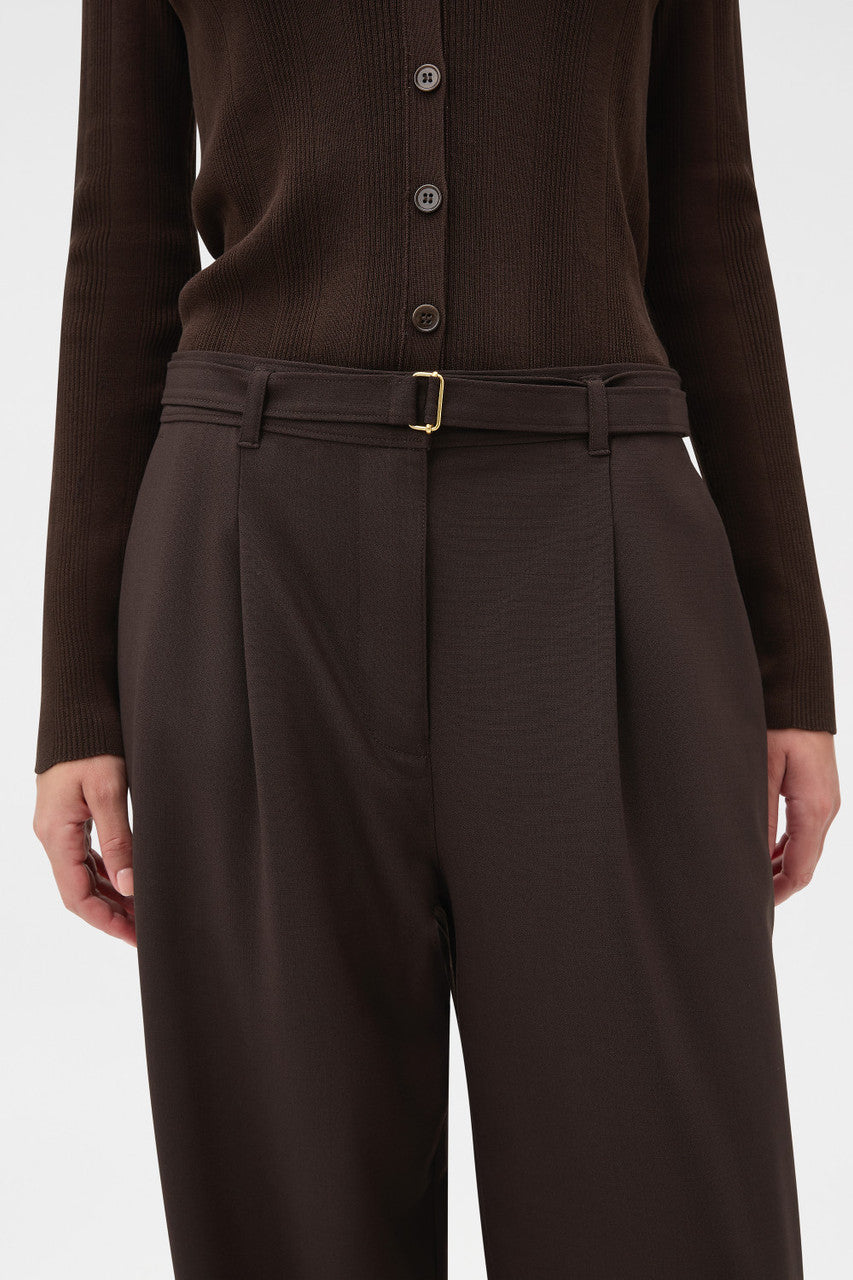 Oroton Belt Detail Pant | Dark Chocolate