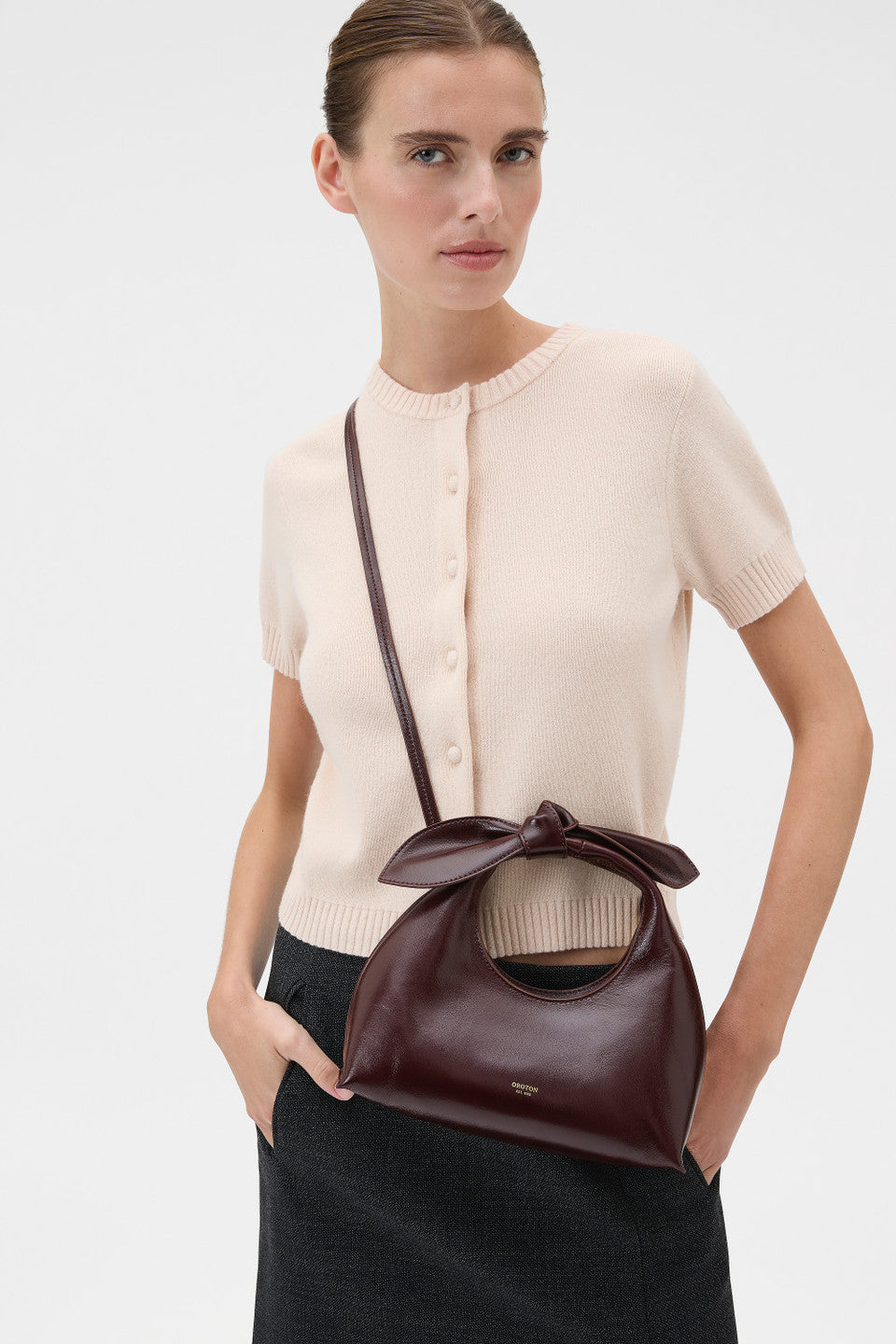 - Adjustable and detachable crossbody leather strap