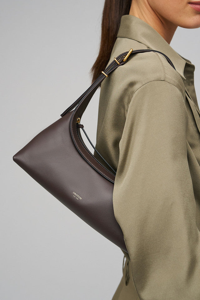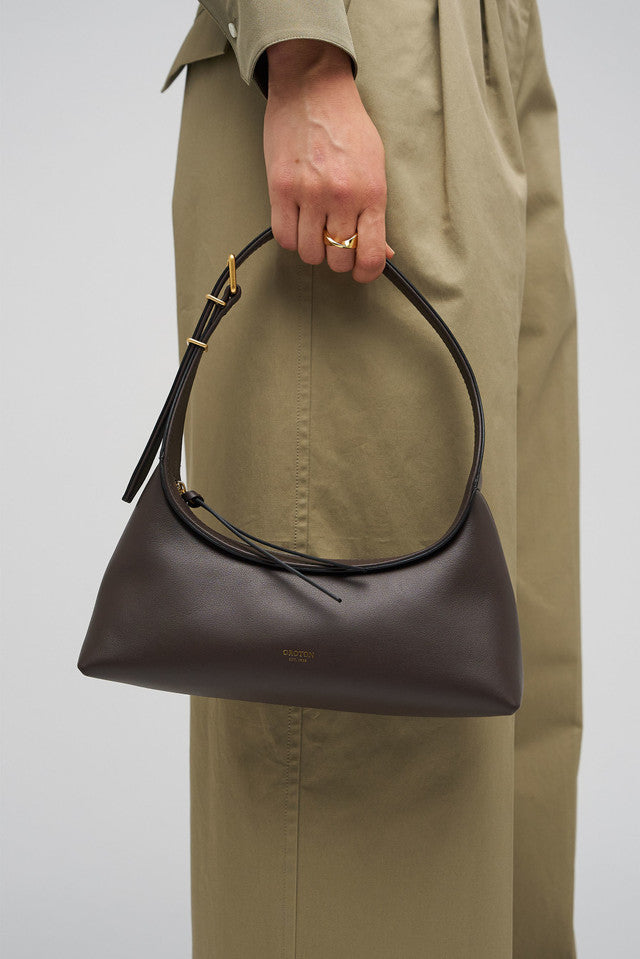 The Cinder Mini Baguette embodies Oroton's signature luxury and timeless design. Crafted from crackle leather, it features a top zip closure, spacious main compartment, and adjustable top handles. This versatile piece is perfect for both everyday use and special occasions.