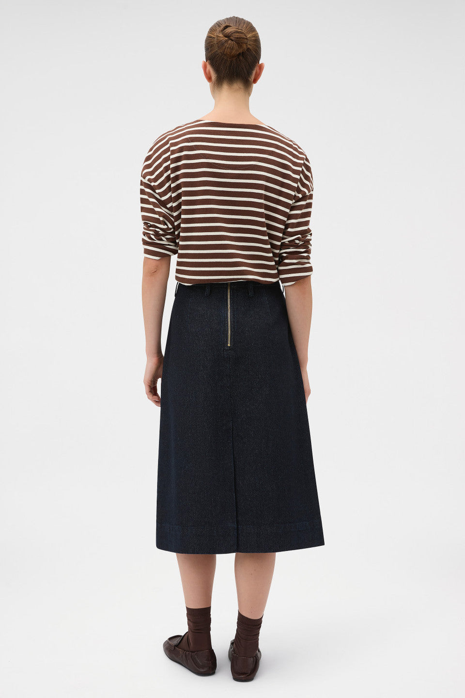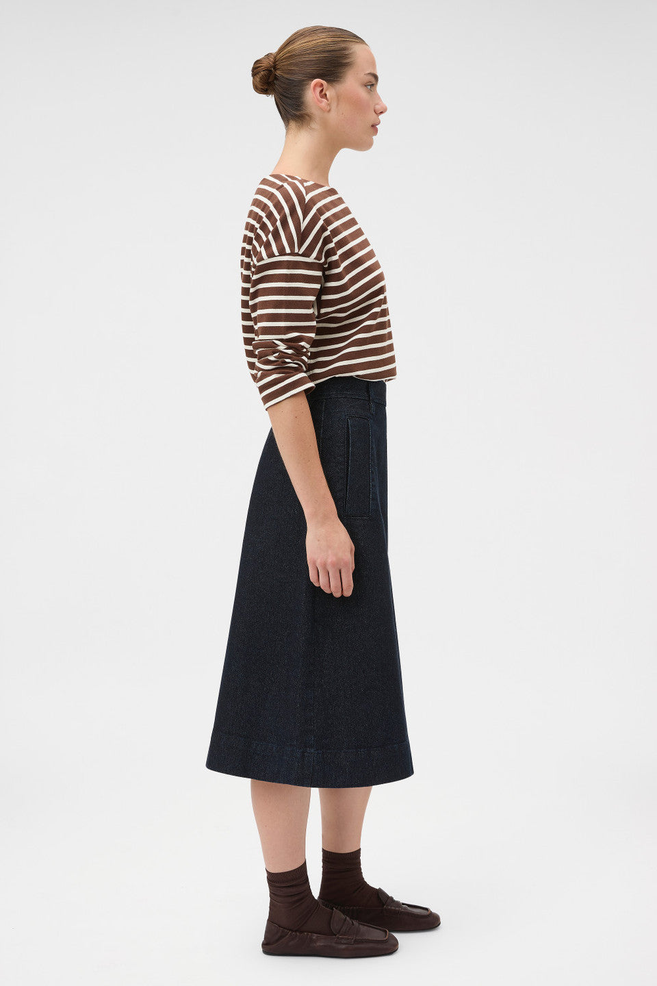 The Denim Midi Skirt is crafted from structured cotton denim with a clean, modern silhouette. Designed for effortless wear, it offers a refined, versatile foundation that transitions seamlessly from casual styling to elevated everyday looks.