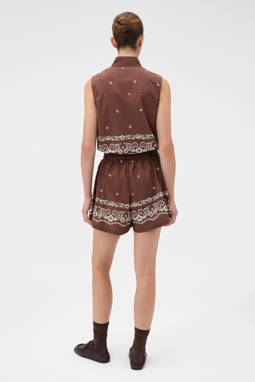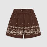 The Floral Bandana Short is crafted from cotton with a relaxed A-line silhouette. Designed with an elasticated waist and side pockets, it delivers comfort and ease while showcasing a distinctive bandana print for elevated casual styling.