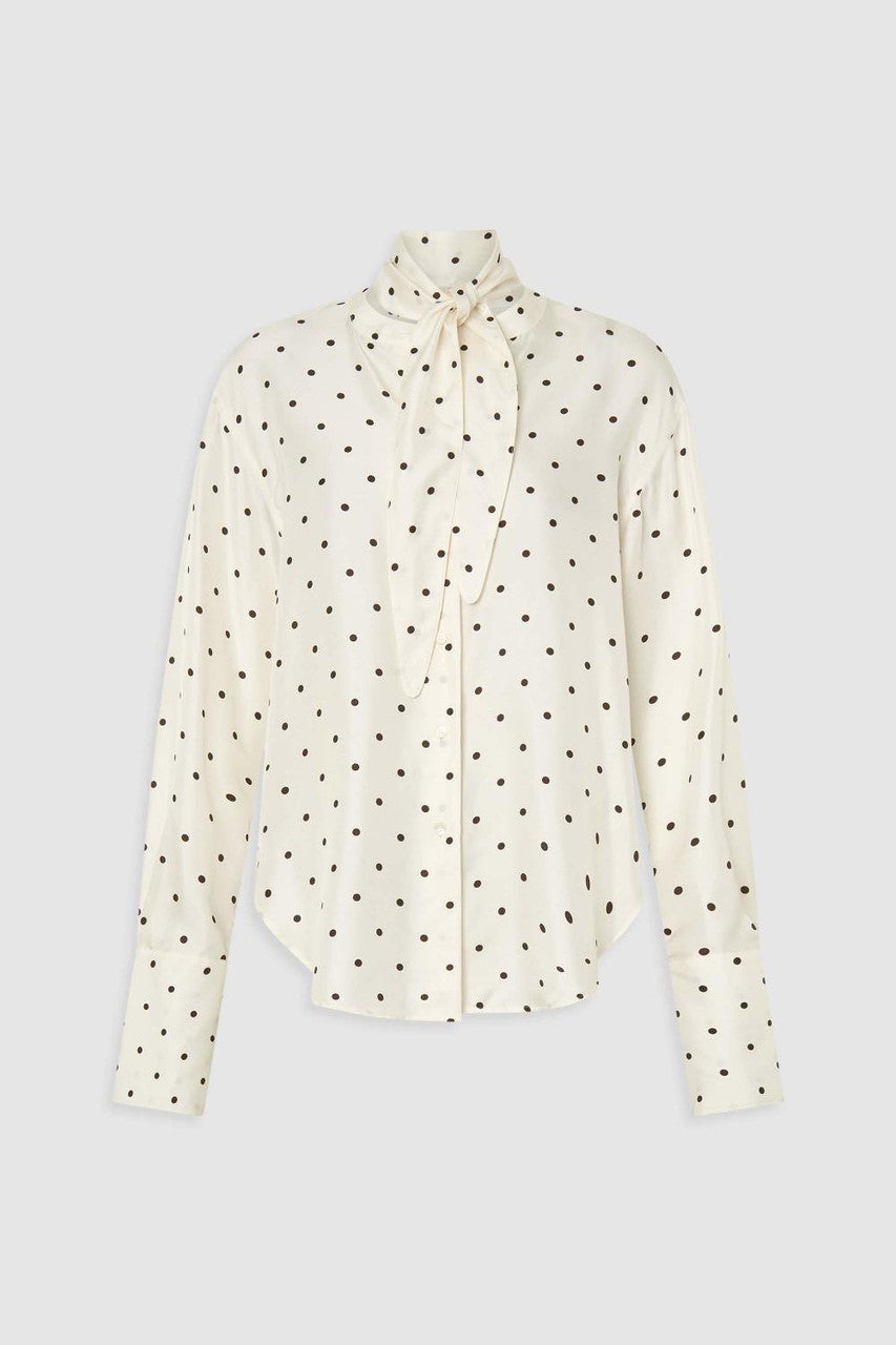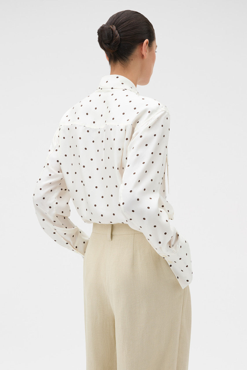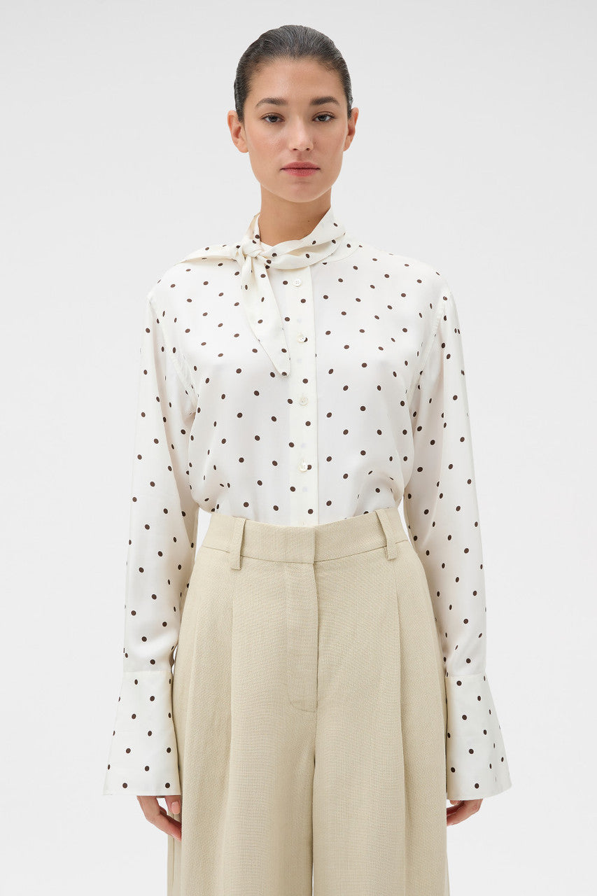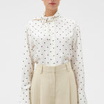 Oroton Graphic Spot Tie Neck Shirt | Cream
