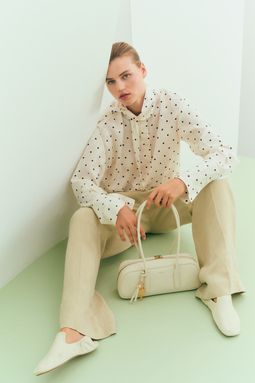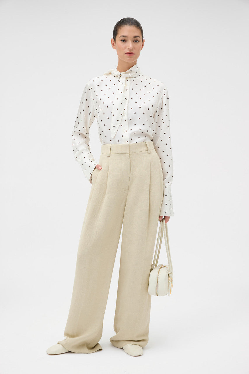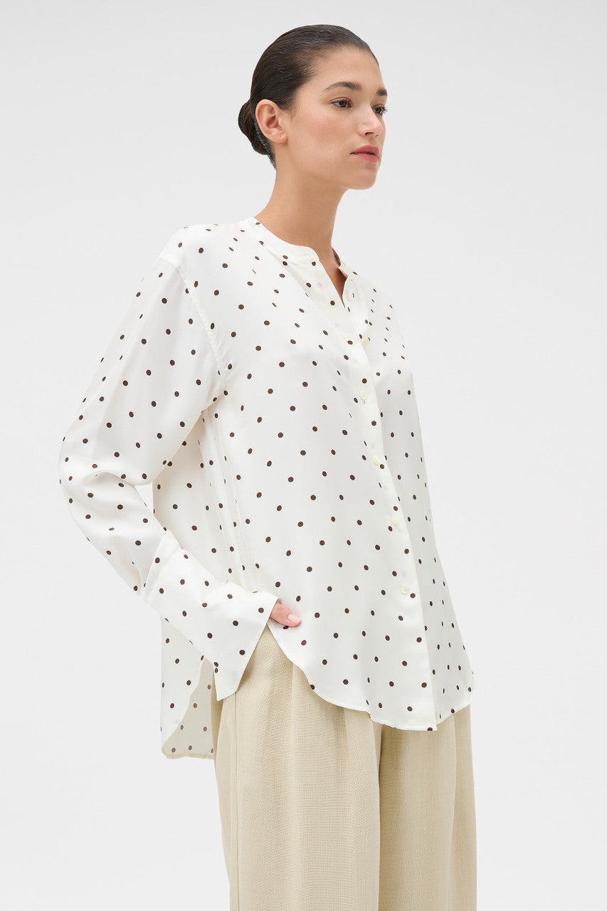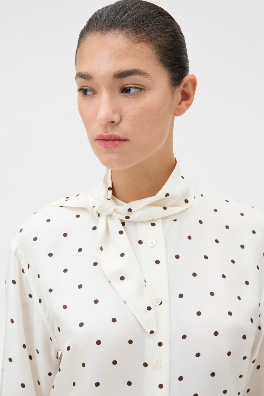 Oroton Graphic Spot Tie Neck Shirt | Cream