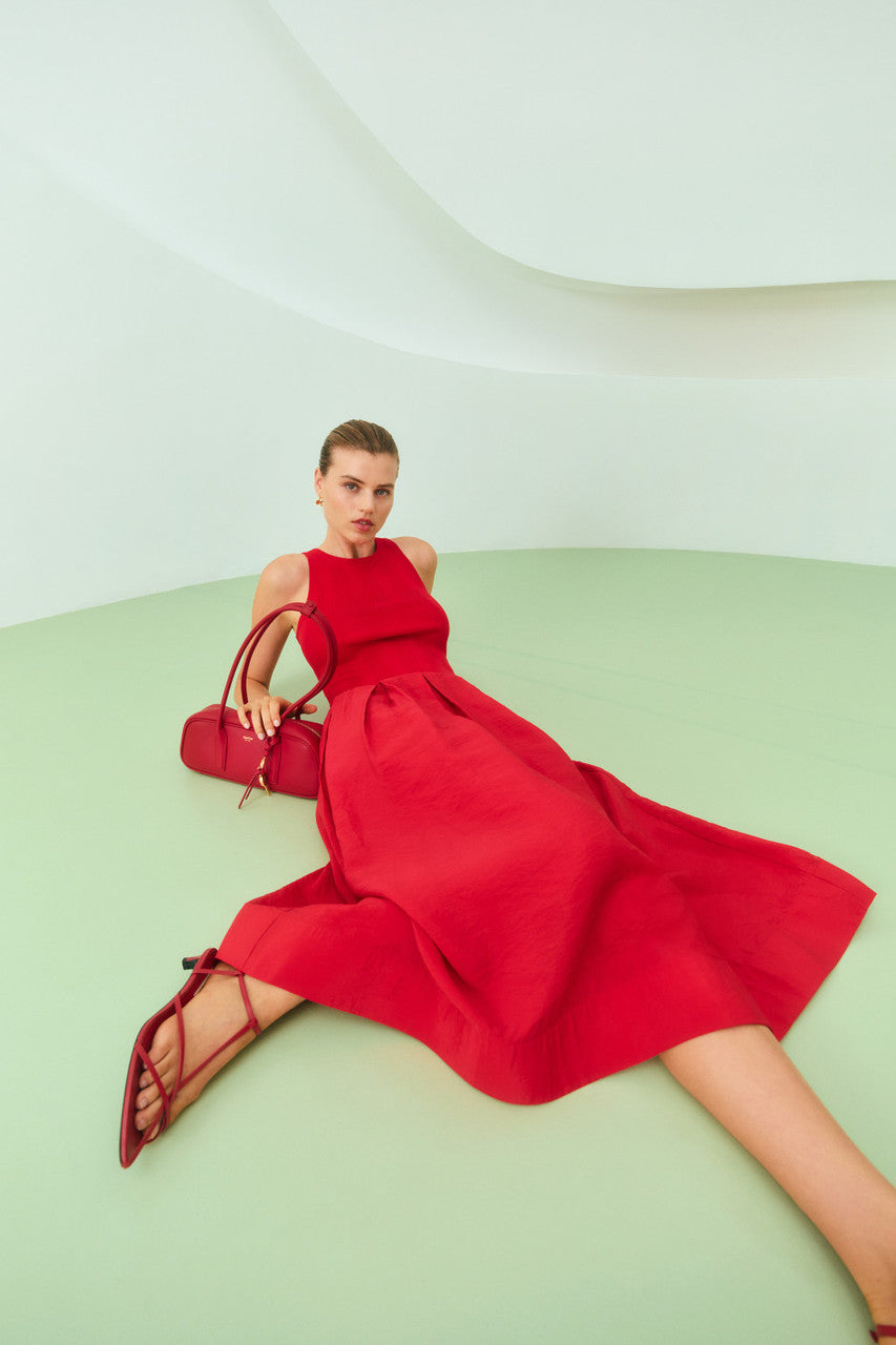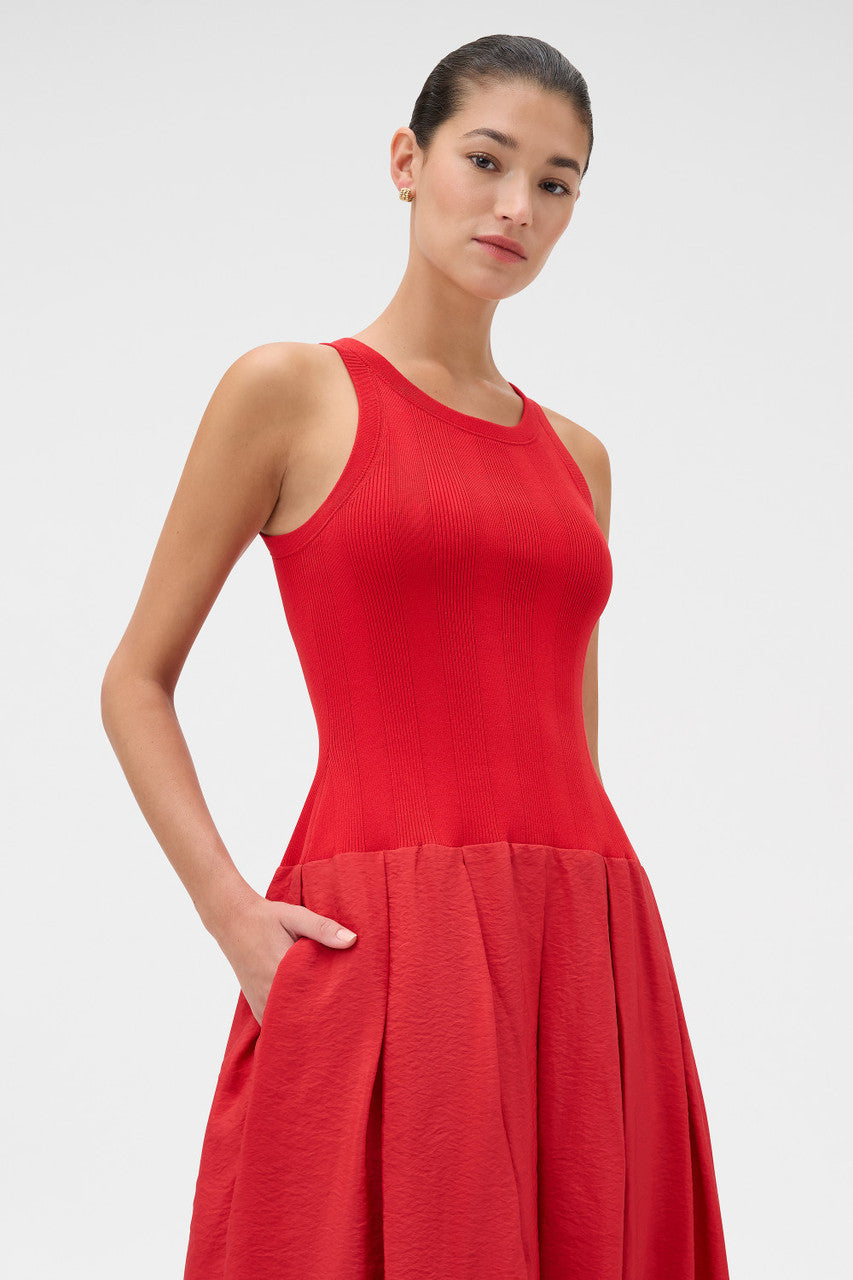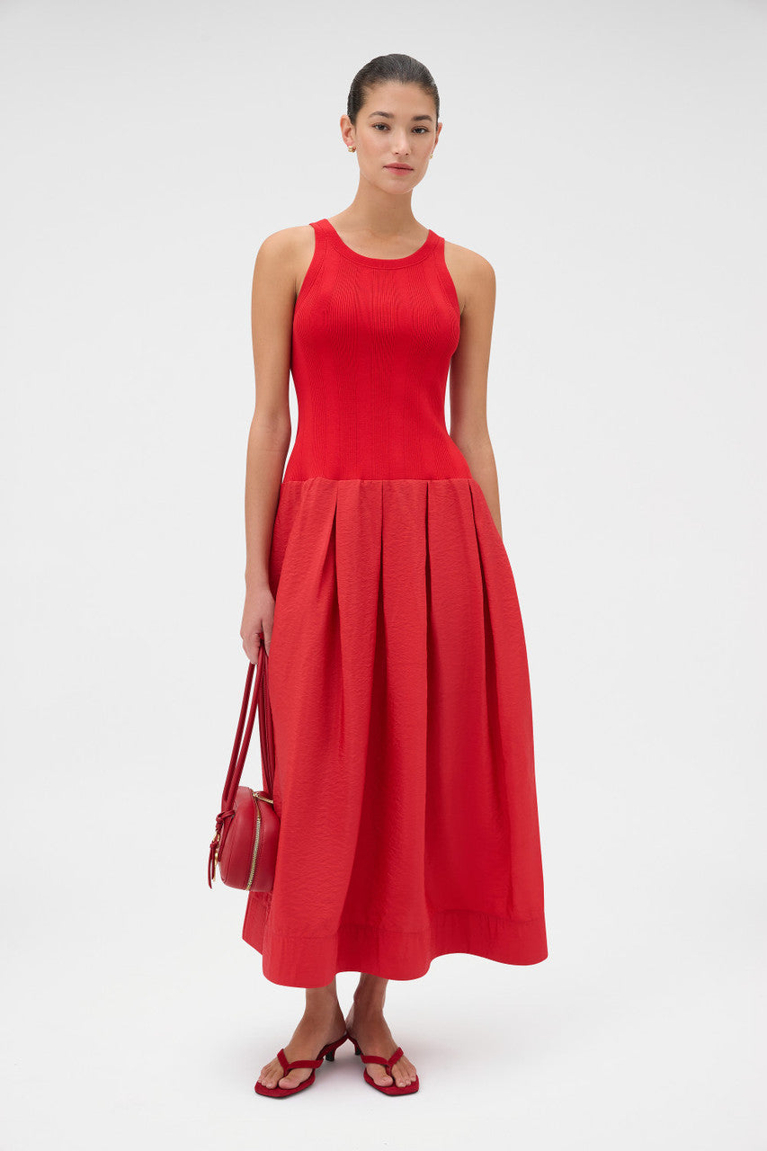 Oroton Knit Bodice Midi Dress | Ribbon Red