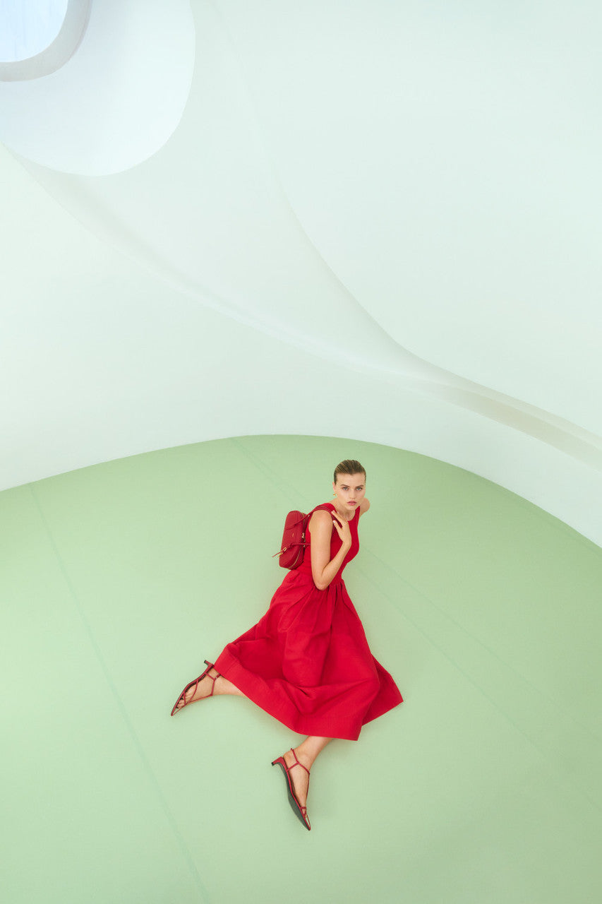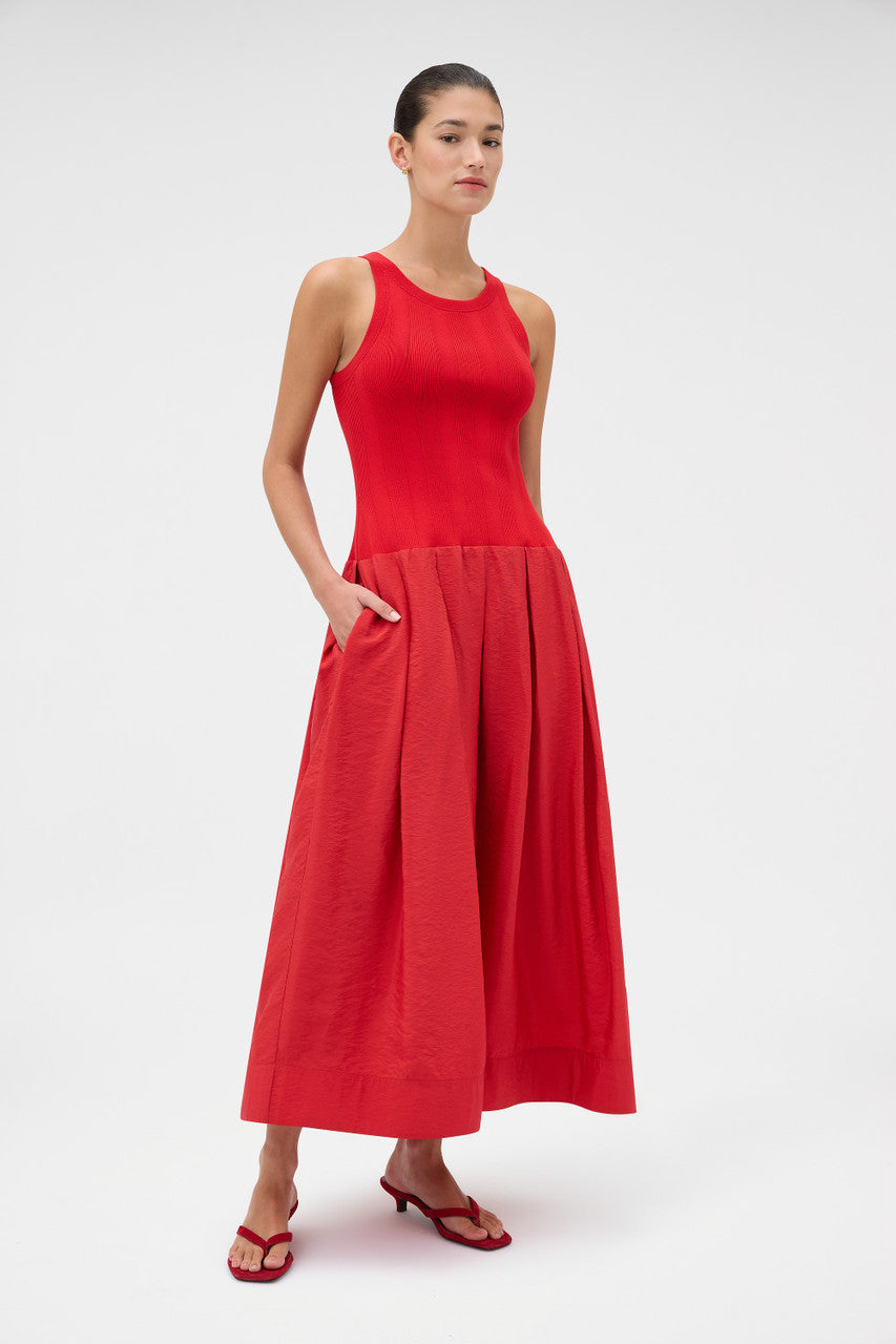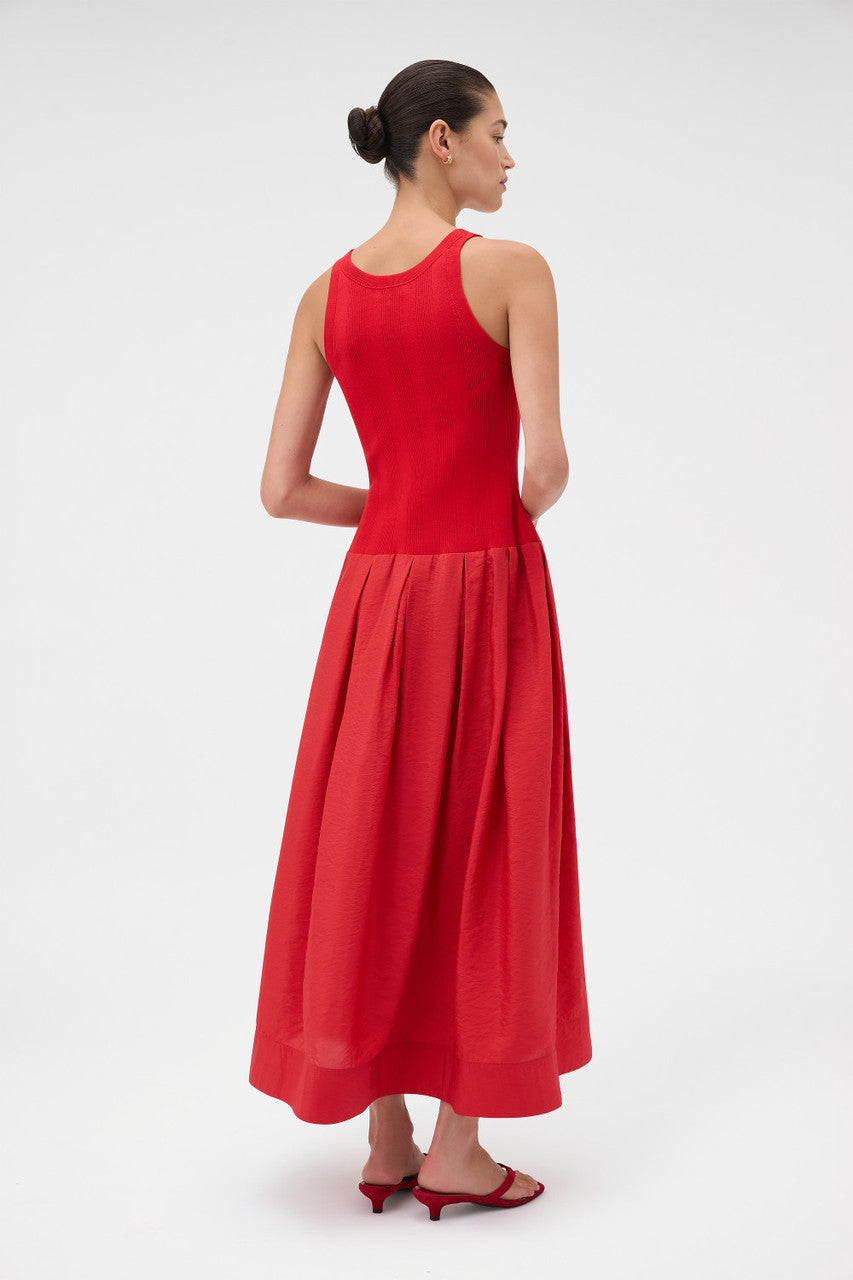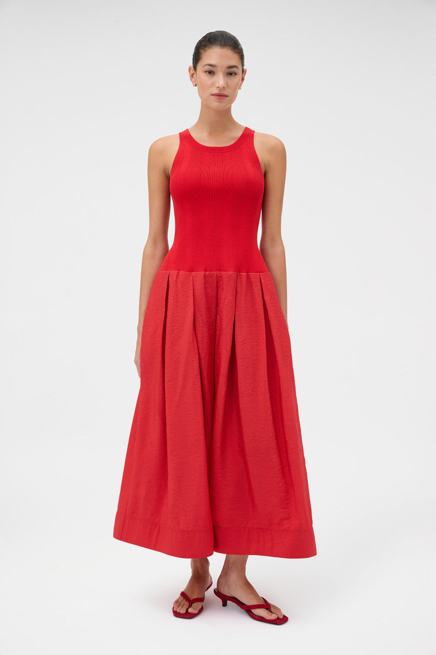 Oroton Knit Bodice Midi Dress | Ribbon Red
