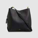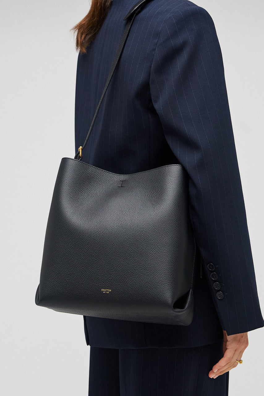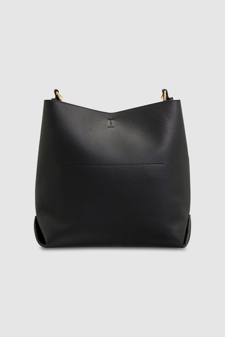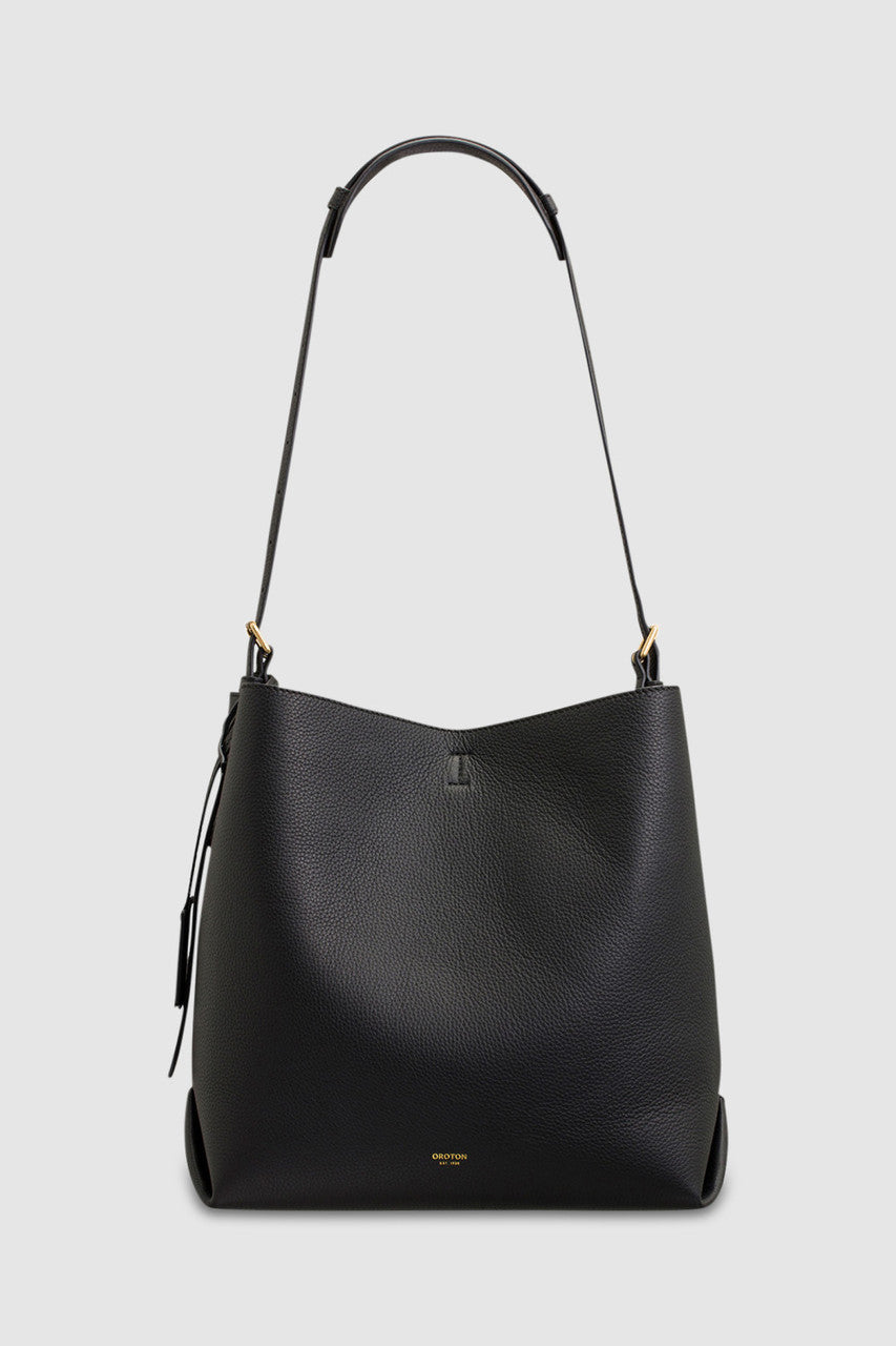 The Margot Hobo is created from a slouchy pebble leather. The day bag features a shoulder strap with roller buckle detail for easy length adjustment and maximum comfort. The interior is lined with contrast light smoke leather and has two main compartments divided by a large internal zip pocket and features a slip pocket plus a leather tab with secure dog clip closure. The bag features a foil embossed logo and a bag charm with a metal plate as a finishing touch.