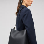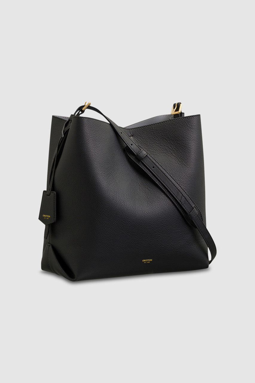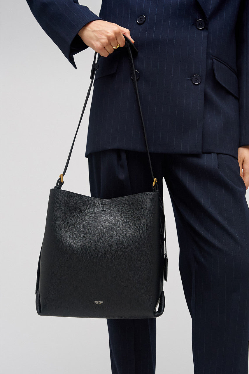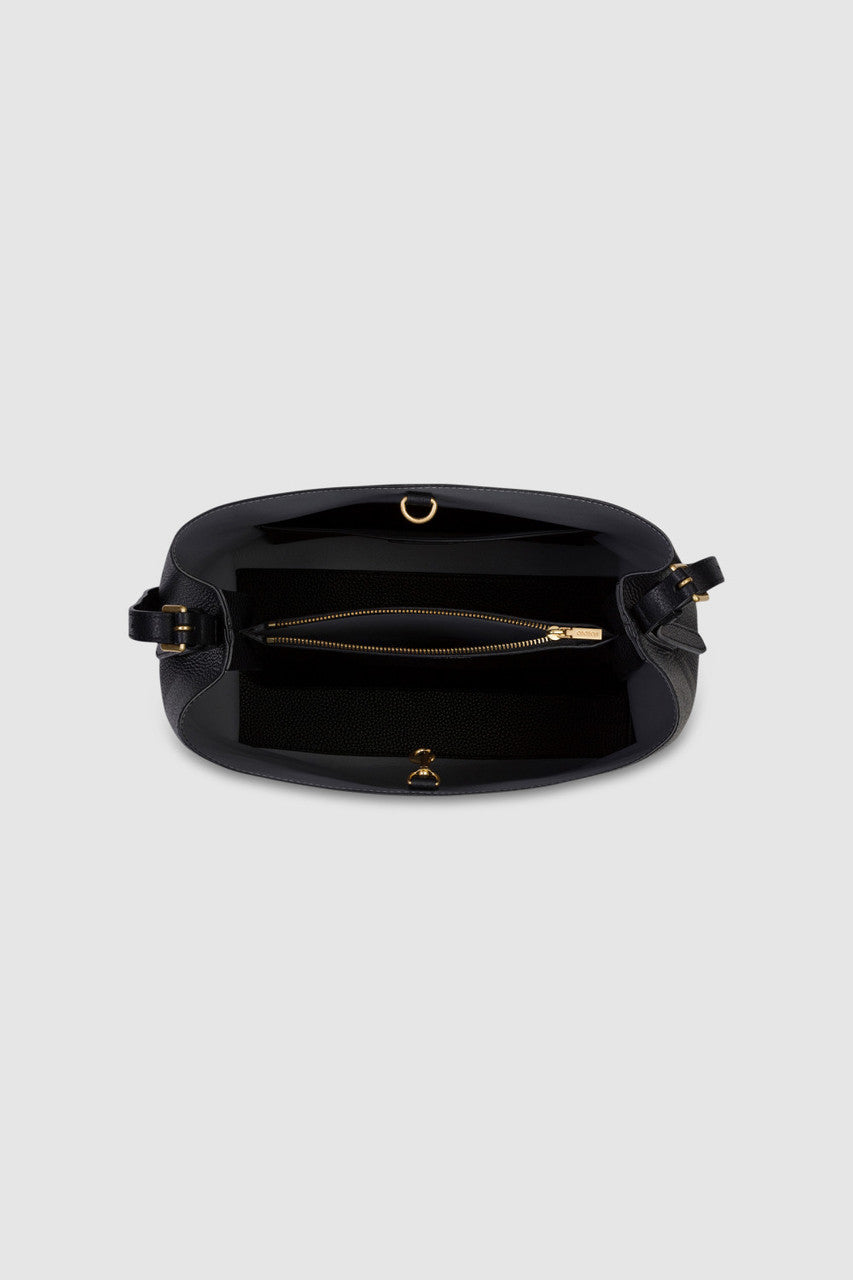 The Margot Hobo is created from a slouchy pebble leather. The day bag features a shoulder strap with roller buckle detail for easy length adjustment and maximum comfort. The interior is lined with contrast light smoke leather and has two main compartments divided by a large internal zip pocket and features a slip pocket plus a leather tab with secure dog clip closure. The bag features a foil embossed logo and a bag charm with a metal plate as a finishing touch.
