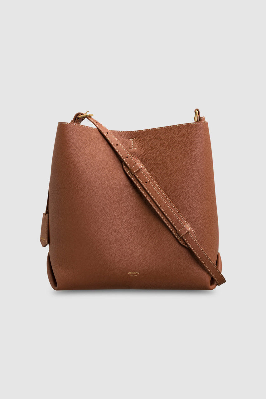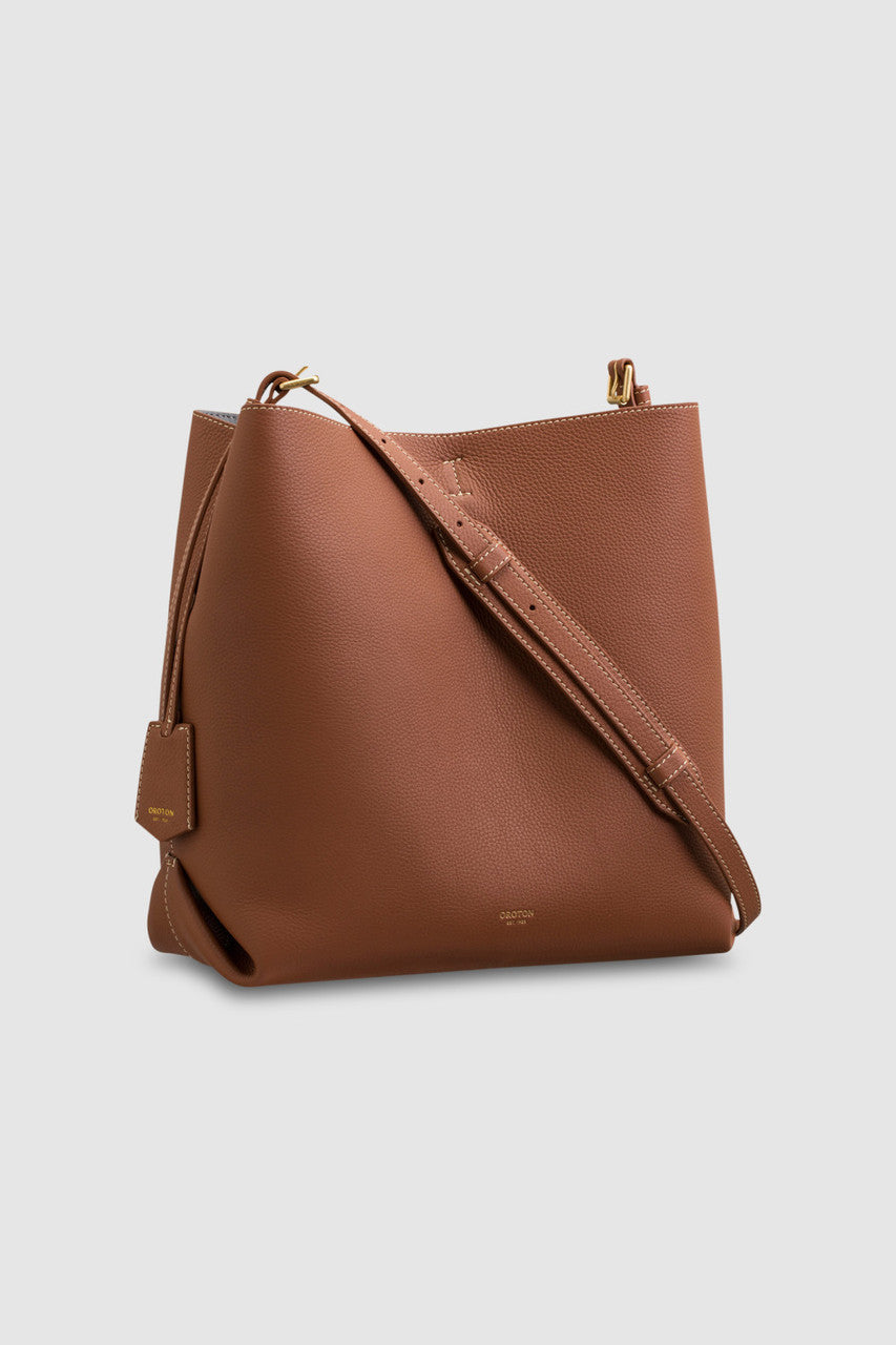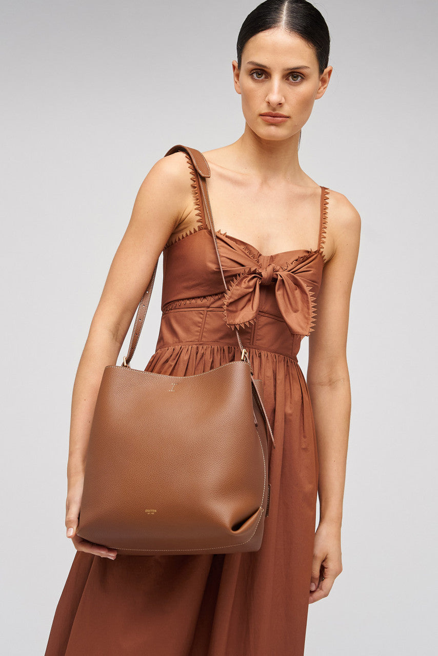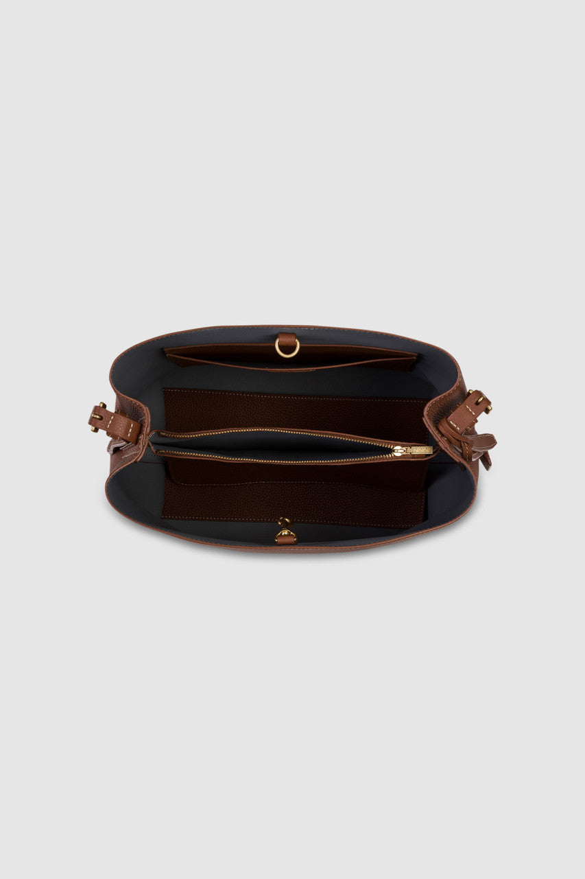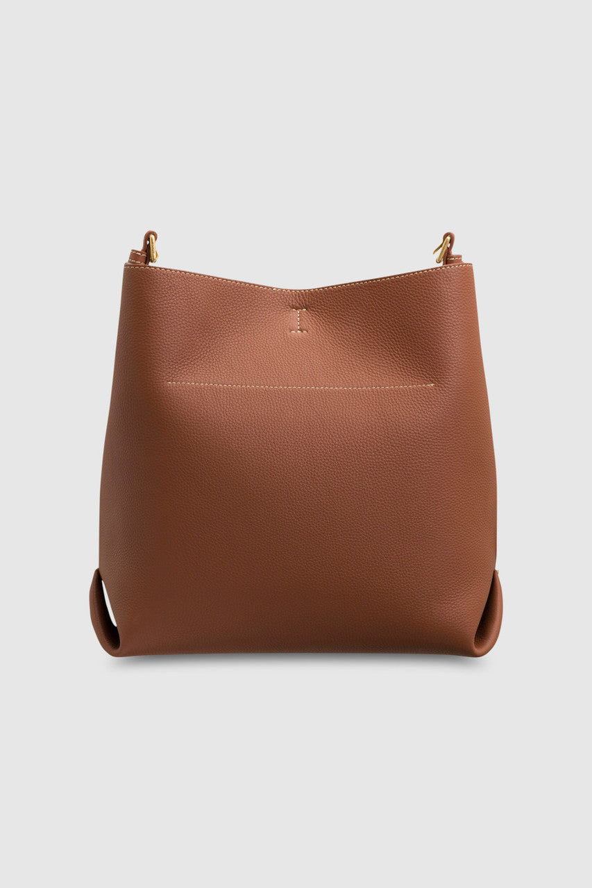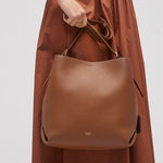The Margot Hobo is created from a slouchy pebble leather. The day bag features a shoulder strap with roller buckle detail for easy length adjustment and maximum comfort. The interior is lined with contrast light smoke leather and has two main compartments divided by a large internal zip pocket and features a slip pocket plus a leather tab with secure dog clip closure. The bag features a foil embossed logo and a bag charm with a metal plate as a finishing touch.