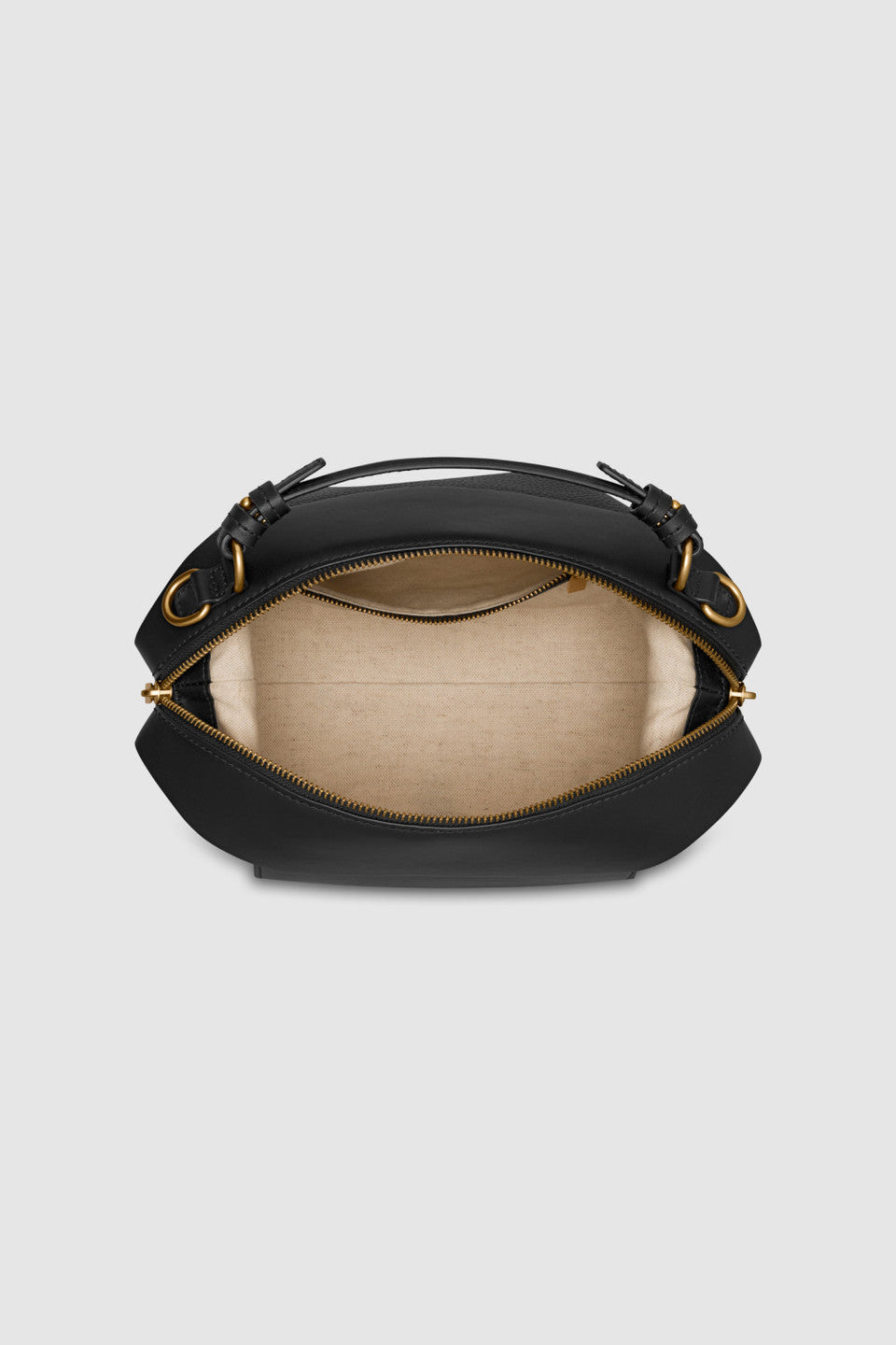 The Mica Bowler combines smooth and pebble leather with brass hardware for a refined finish. It features a two-way zip closure, spacious main compartment, external and internal pockets, and durable canvas lining. Complete with a removable top handle and adjustable crossbody strap for versatile elegance.