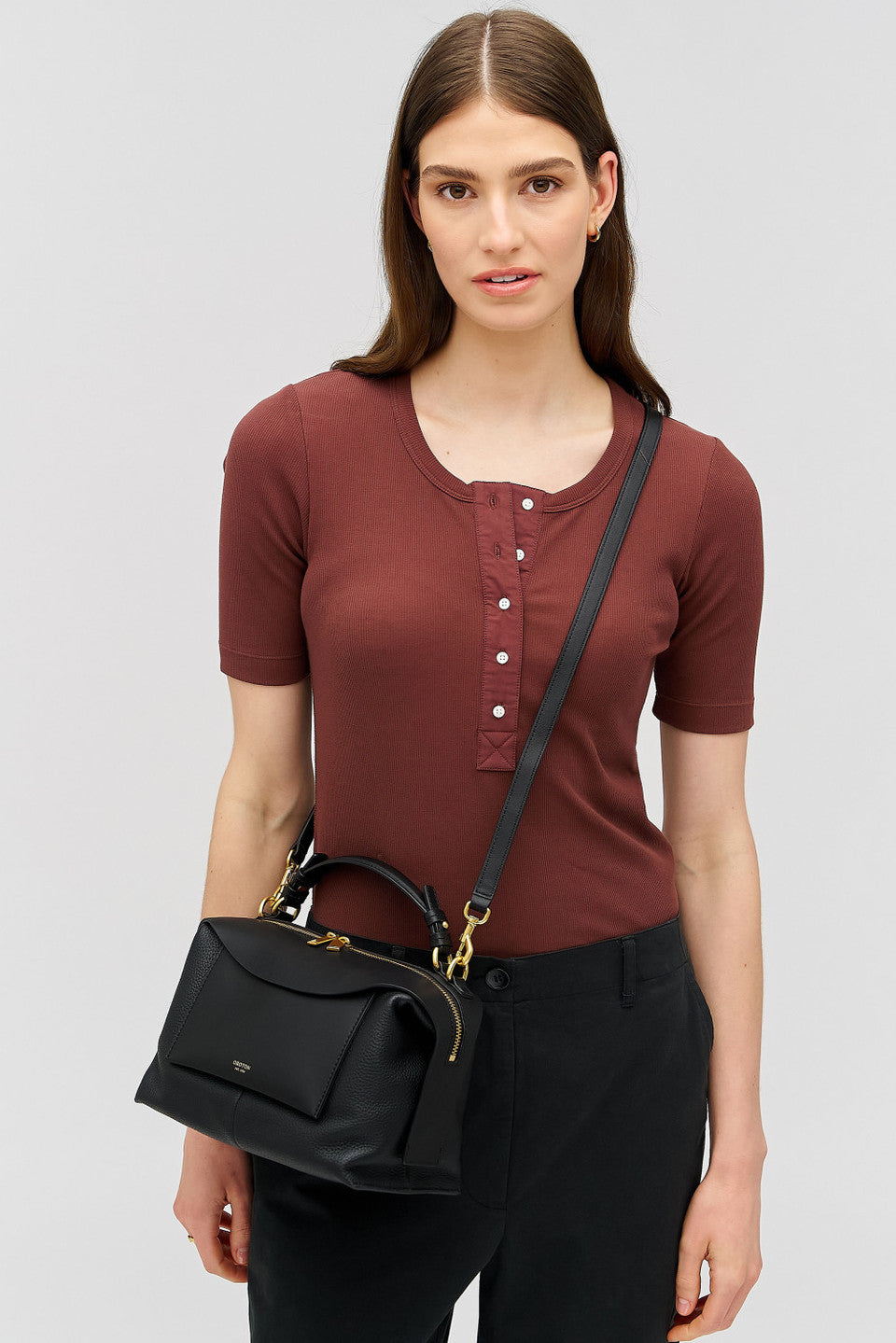 - Removable top handle and an adjustable, detachable crossbody strap for versatile styling