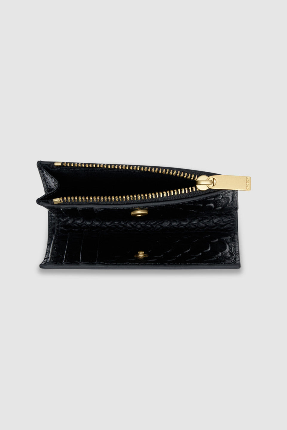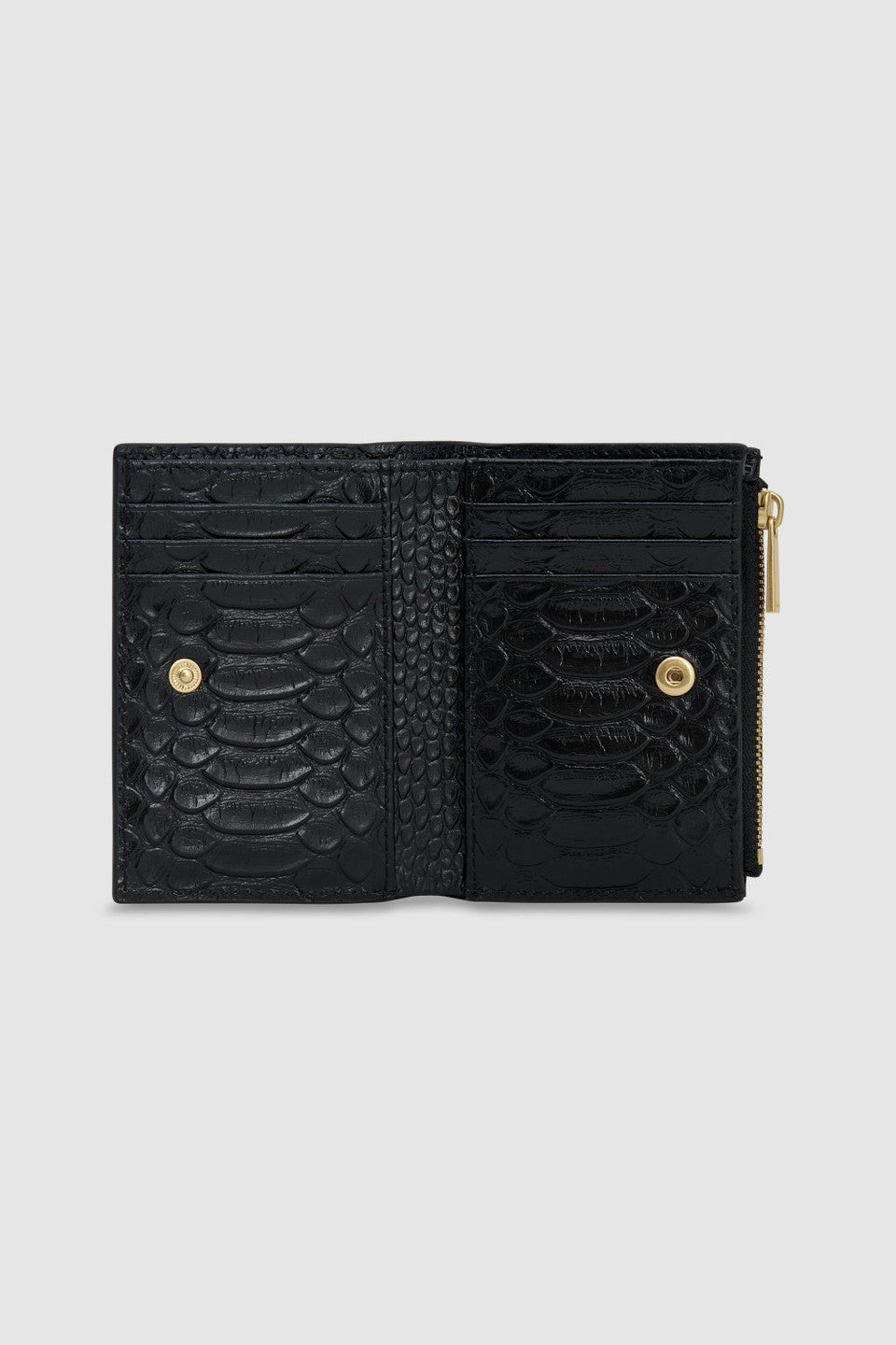 Oroton Mica Mini 10CC Zip Texture Wallet | Black Snake