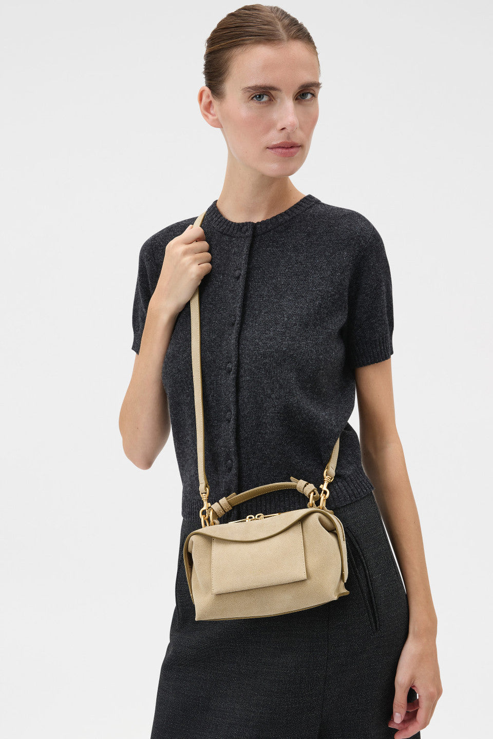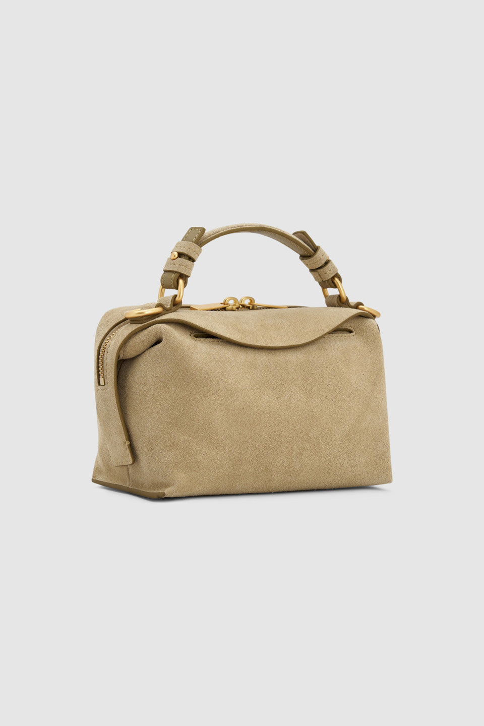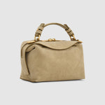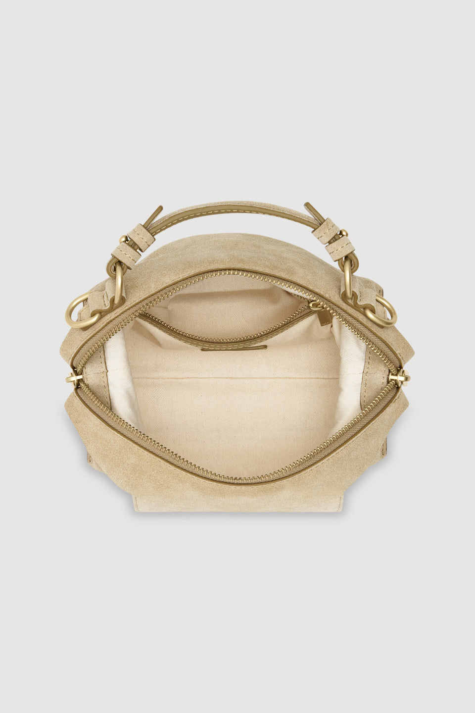 Our iconic Mica Mini Bowler returns in suede for a soft, supple finish and elevated feel. Paired with the season’s new neutral, Teak, it complements any wardrobe. Due to the delicate nature of suede, colour transfer and markings may occur—apply Oroton Stain and Rain Protector and let dry for 10 minutes before use to preserve its condition.