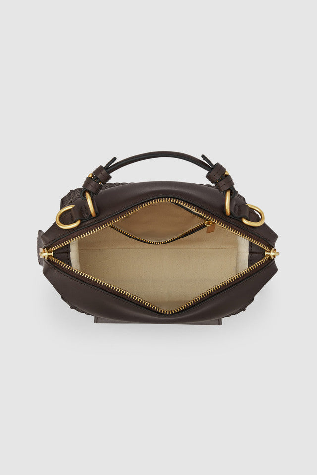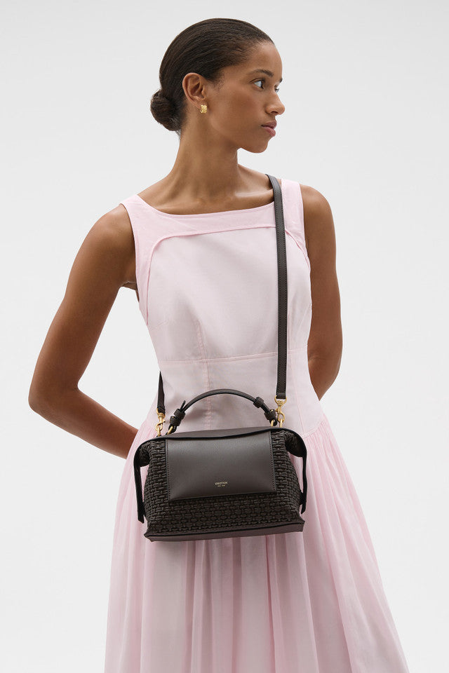 Inspired by the intricate weave of a handcrafted chair, the Mica Workmanship Bowler blends artisanal craftsmanship with modern luxury. The bag body is entirely handwoven, taking one artisan over 5 hours to complete, ensuring a truly unique finish. Designed for sophisticated everyday wear, this structured silhouette offers both elegance and functionality.