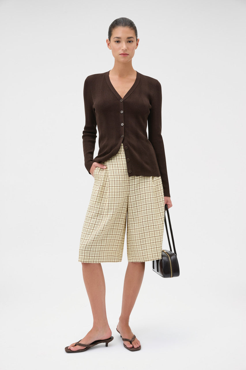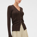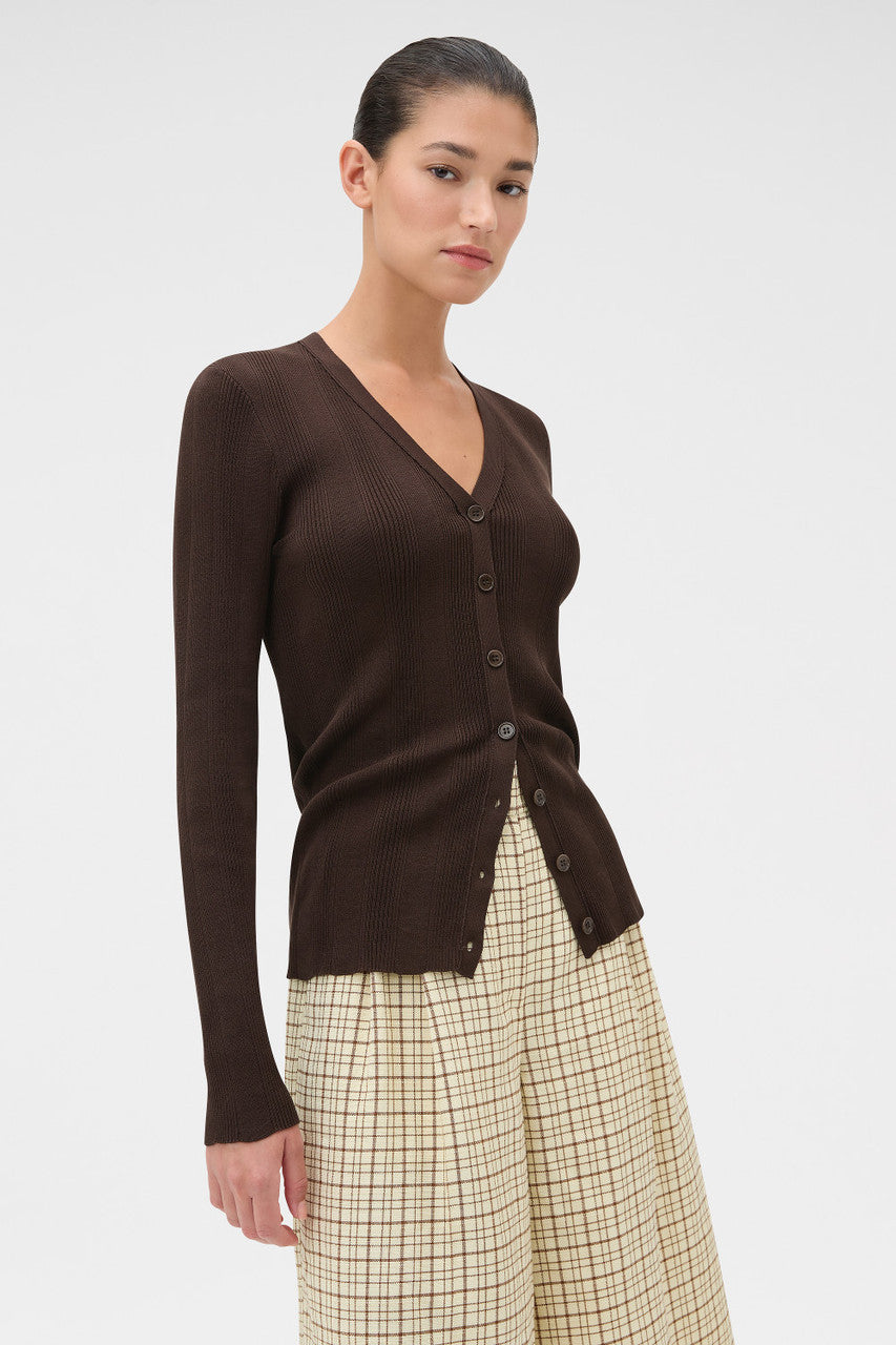 - Fine rib patterned knit cardigan with flattering V neckline