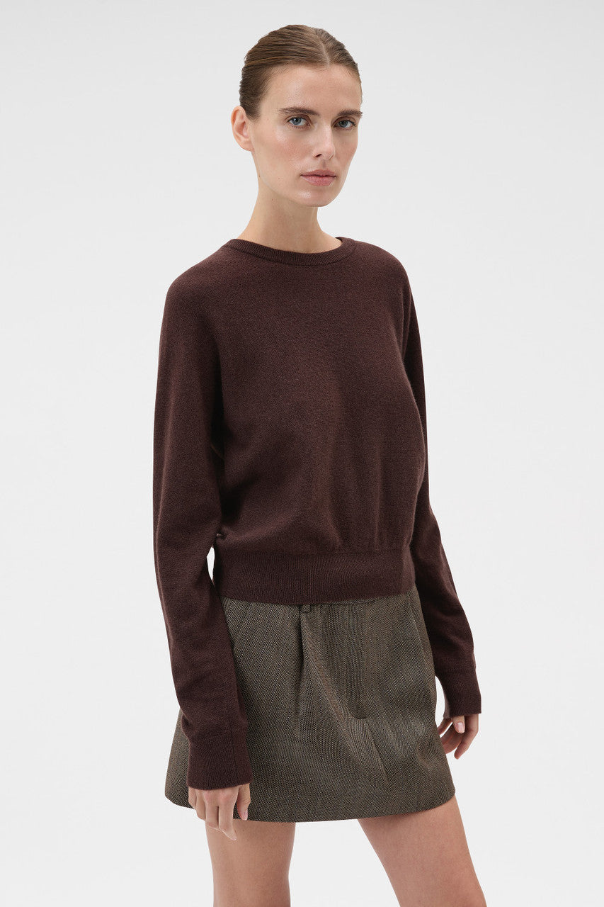 - Fully fashioned crew-neck knit with fine rib trim finishes throughout