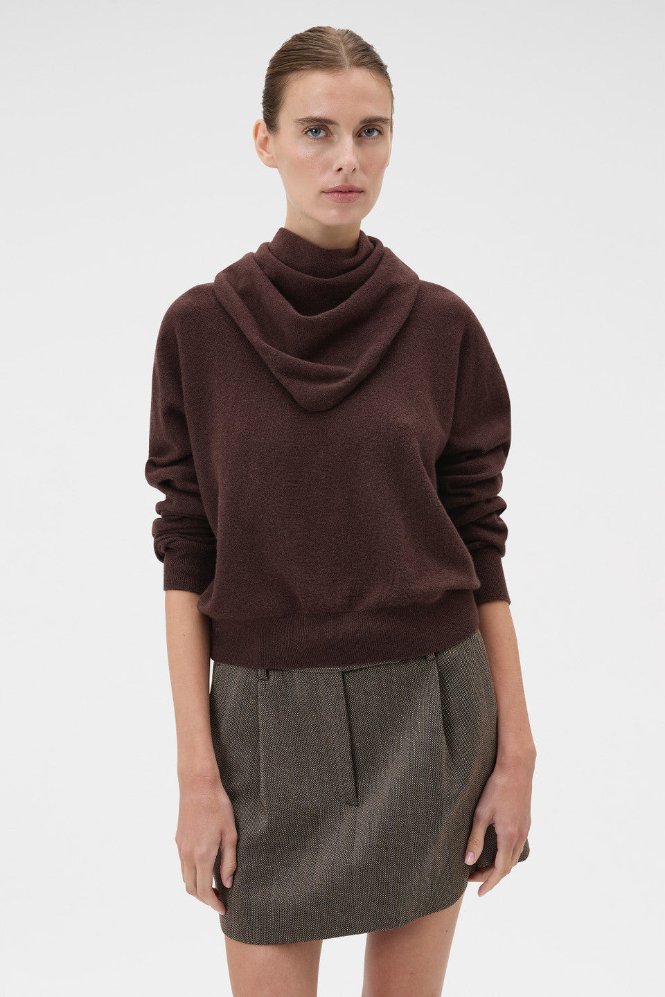 The Scarf Knit is crafted from 100% mid-gauge Merino wool fabric for plush warmth and comfort. Featuring a fully fashioned crew-neck, fine rib trims and long Magyar sleeves, it offers a relaxed yet refined fit. Style it layered over tailored pants or jeans for timeless, everyday elegance.