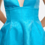 The Mornington Mini Dress in Cyan Metallic is the epitome of understand elegance. Crafted with the event season in mind, featuring a sweetheart neckline, embroidered eyelet detail through the back bodice and accentuated skirt.