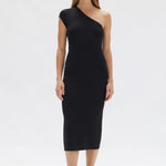 Assembly Label Elodie One Shoulder Knit Midi Dress | Black