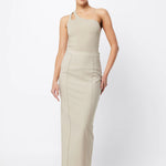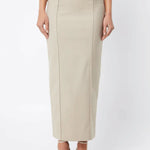 The Fable Maxi Skirt in beige embodies comfort and versatility. The skirt features a high-rise waist, wide waist band, fitted silhouette and a centre back split for ease of movement. Pair with the Manifest Top in beige to transition this piece from desk to dinner.