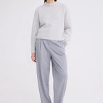 Spun from a beautifully soft merino wool alpaca and fine lurex blend, this sweater paires subtle metallic shimmer with a luxuriously cosy handfeel. Featuring a timeless crew neckline that flows into relaxed fit throughout the body, this piece moves seamlessly between elevated elegance and casual chic styled with bias maxi skirts and wide leg trousers.