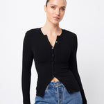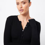 The LyonCardigan in Black is designed to keep you warm and stylish this season. Made from a soft double-layer ribbed jersey, this cardigan offers a generous amount of stretch and features a round neckline, self-coloured button front and long sleeves with thumb hole detailing. This cardigan is conveniently designed to be paired with existing pieces in your wardrobe and can be worn on its own or with a layer underneath, making it the perfect trans seasonal piece.