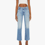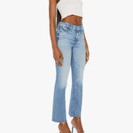 Destination unknown. Narrow flare jeans with a mid rise and a 28.25-inch inseam with a frayed hem. Cut from semi-rigid SUPERIOR denim, Are We There Yet? is a light blue wash with whiskering and fading throughout.