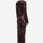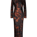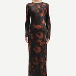 Slim fitting long sleeve maxi dress. Crew neckline with an invisible center back zip fastening. Bust darts, hem slit. Bias cut, satin weave EcoVero Viscose blend fabric. This product contains LENZING™ ECOVERO™ Viscose, certified with the EU Ecolabel for meeting high environmental standards.