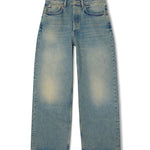 Low-waist jeans with a loose fit and wide leg. Button and zipper closure at the fly. Five-pocket style. Belt loops. Main material made from a blend of organic cotton and recycled cotton. This product contains organic cotton grown without the use of GMOs or hazardous chemicals and recycled cotton derived from pre- and post-consumer waste.