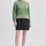 Second Female two-tone pullover. Made in soft and lightweight wool blend with chunky two-tone knit. Featuring a round neckline. Ribbed neck, cuffs and bottom hem in contrast rib trim. Dropped shoulders. Relaxed, slightly boxy fit.