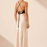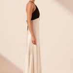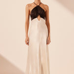 Shona Joy Lino Cross Back Halter Maxi Dress | Cream/Black