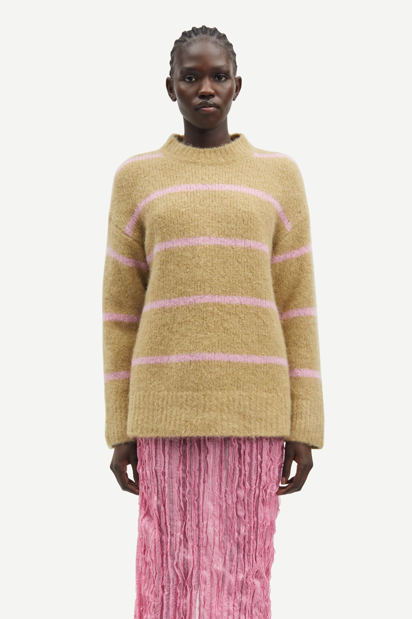Samsoe Samsoe Sajoan Sweater | Olive Grey Stripe