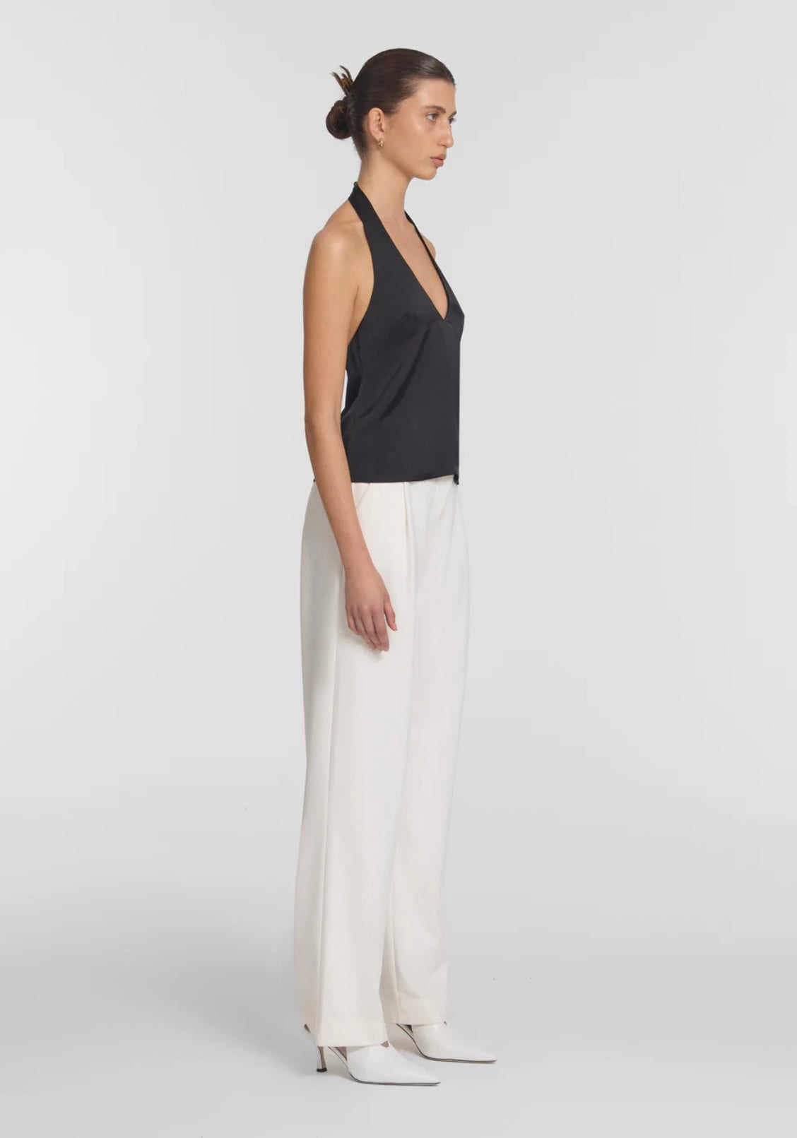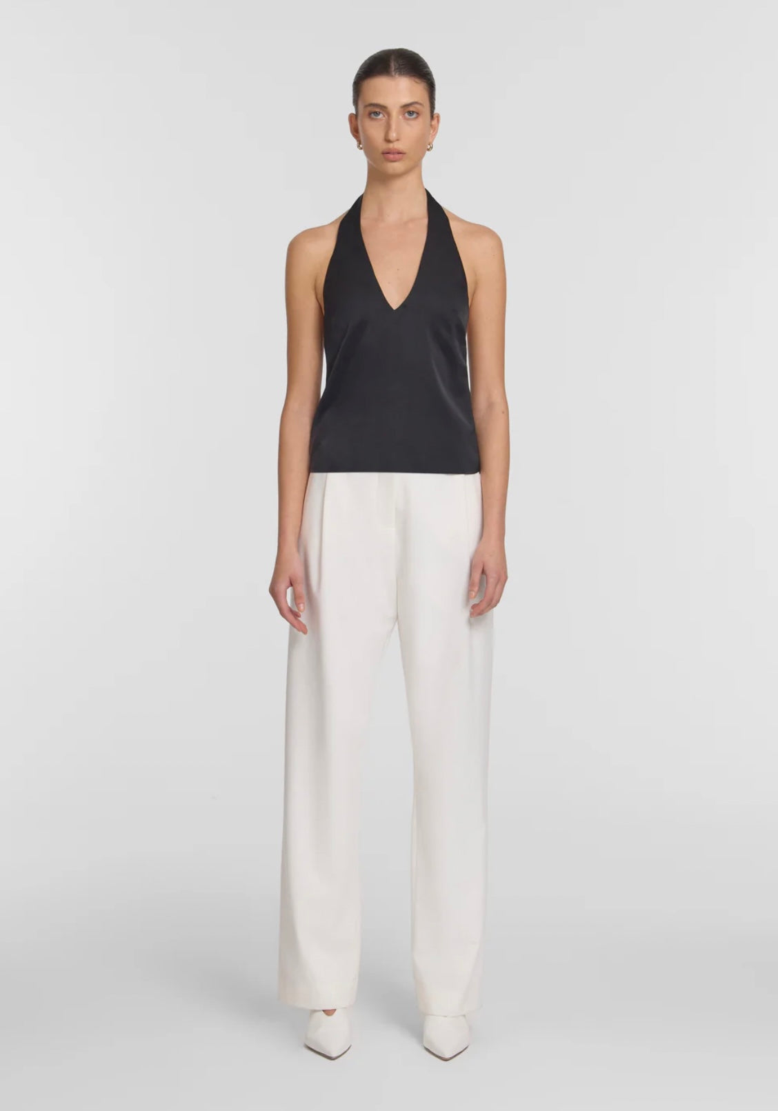 Introducing the Evian Halter Top, a refined essential crafted from lightweight cupro in classic ivory. This sophisticated piece features a V-neckline, french darts at the bust, and a sleek button fastening at the back for a polished finish. Effortlessly embodying timeless elegance, it’s the perfect go-to for any occasion.