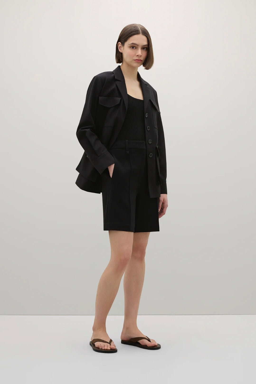 Crafted from a luxurious Turkish wool, the Keely Short is a relaxed tailored style featuring a pintuck through front and back leg, belt loops and a cut away pocket detail.