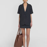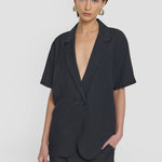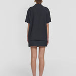 Introducing the Hepburn Shirt, a refined take on our iconic Chorus Shirt, tailored in a luxurious black bamboo blend. With its double-breasted front and relaxed fit, this piece offers timeless versatility. Effortlessly pair it with the Peninsula Skirt for a chic set, or style with tailored separates or denim for a classic, polished look.