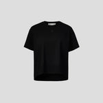The Radio Tee in black is a must-have everyday essential, featuring a boxy, cropped silhouette in a luxe ponte fabrication. Designed with a self neck bind and finished with a tonal V&W at the centre front neck. Versatile and easy to wear, it's the ultimate wardrobe staple for effortlessly chic style.