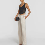 A modern take on cupro set dressing, the Rocky Pant makes a statement with an ivory panel down the side seam, adding depth to the lightweight champagne cupro. With a loosely tailored silhouette, wide leg, and an elasticated waistband with functional drawcord, it pairs perfectly with the Literature Shirt or Utopian Vest for effortlessly chic styling with an element of sportsluxe.