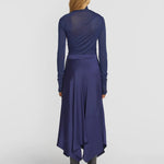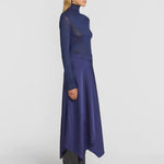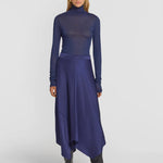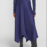 Evoking timeless elegance, the Viola Skirt is crafted in a deep blue cupro blend. Showcasing a flat waistband and panelling that cascades into a layered hem, it offers a refined, fluid silhouette. Pair with the Moonlight Skivvy or Formation Shirt for an elevated evening look, exuding understated opulence.