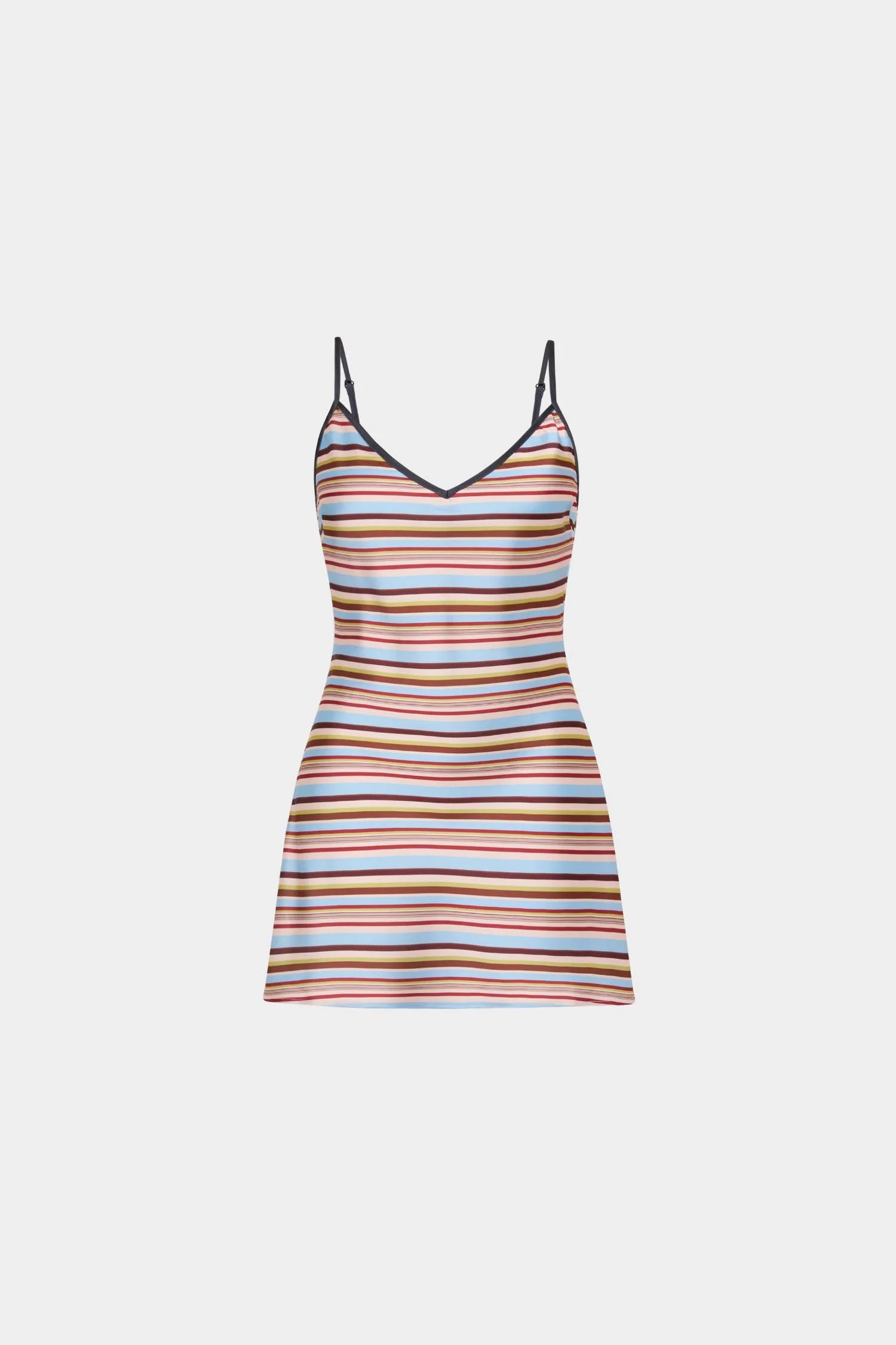 Discover our best-selling silhouette in an exclusive Vintage Stripe print. The bias cut drapes elegantly over the body, with a striking mix of colours that creates a fun, contemporary feel. The new fabric composition adds a subtle lustre for a beautifully elevated finish.