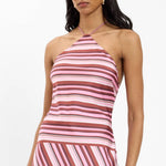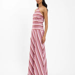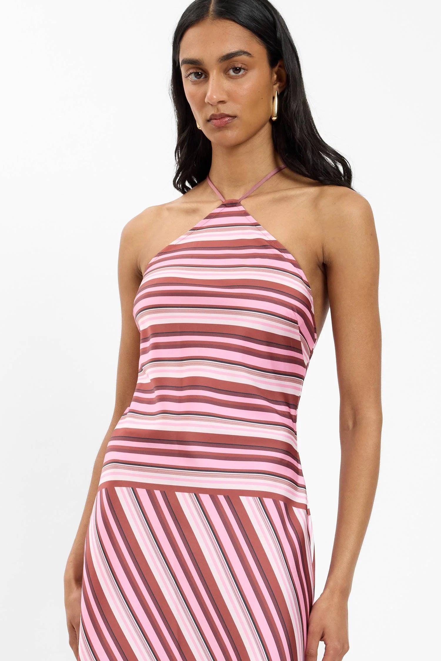 Discover our best-selling Halter Maxi Dress in an Exclusive Magenta Stripe hue. Cut on the bias for a fluid drape, this dress skims the silhouette with a soft A-line shape. The triangle neckline and thin straps frame the décolletage, while a low scooped back adds a touch of edge. The new fabric composition adds a subtle lustre for a beautifully elevated finish.