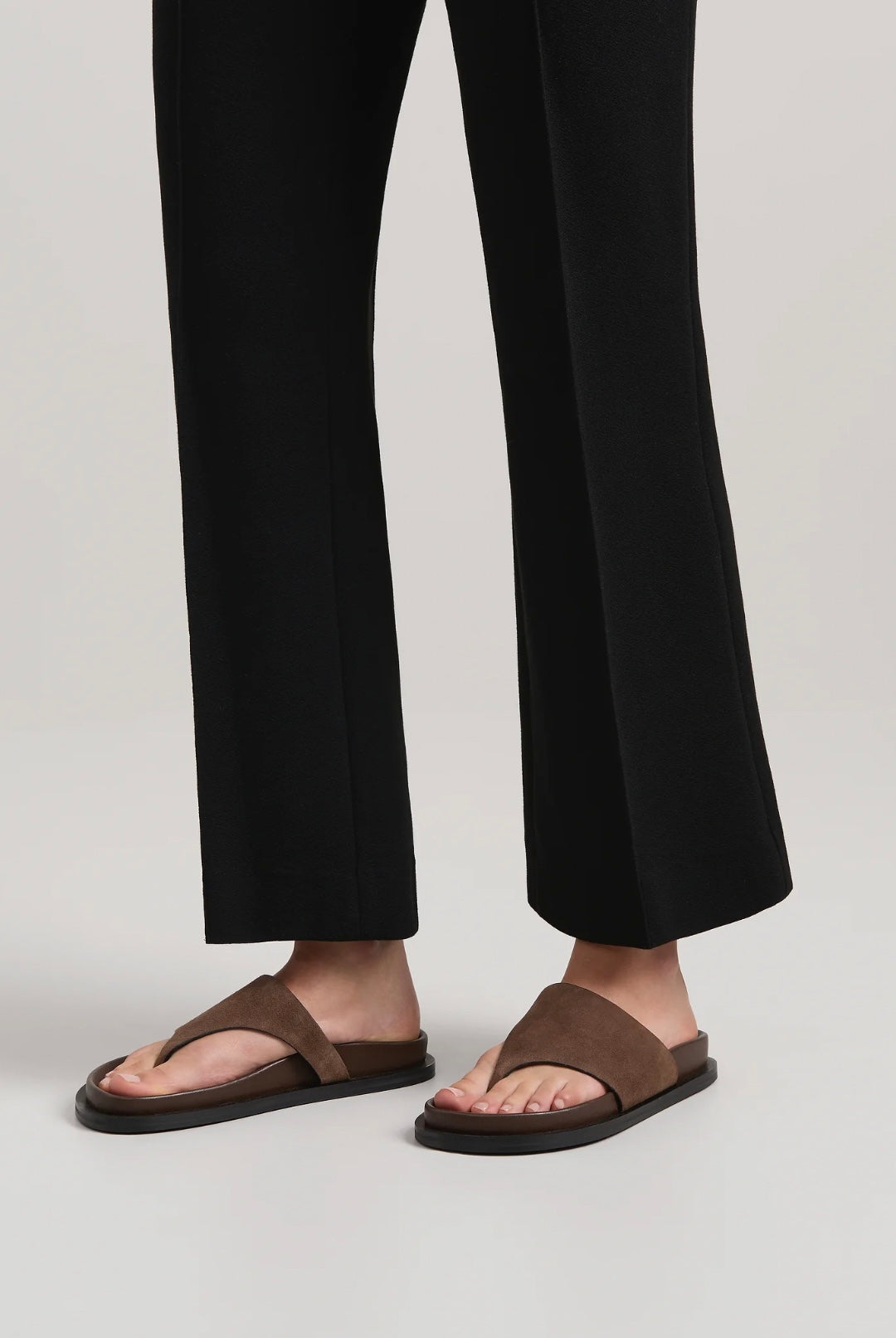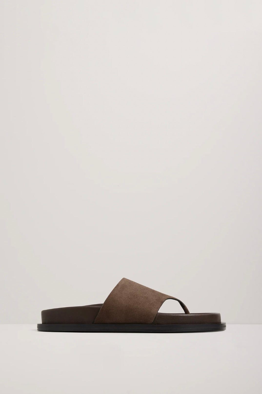 The Imara Sandal is a contemporary flip flop style that sits atop our moulded footbed with a chunky rubber sole. This style is made from suede leather with leather upper, insole and rubber outsole. Full leather sandals are premium in their make and wear naturally over time.