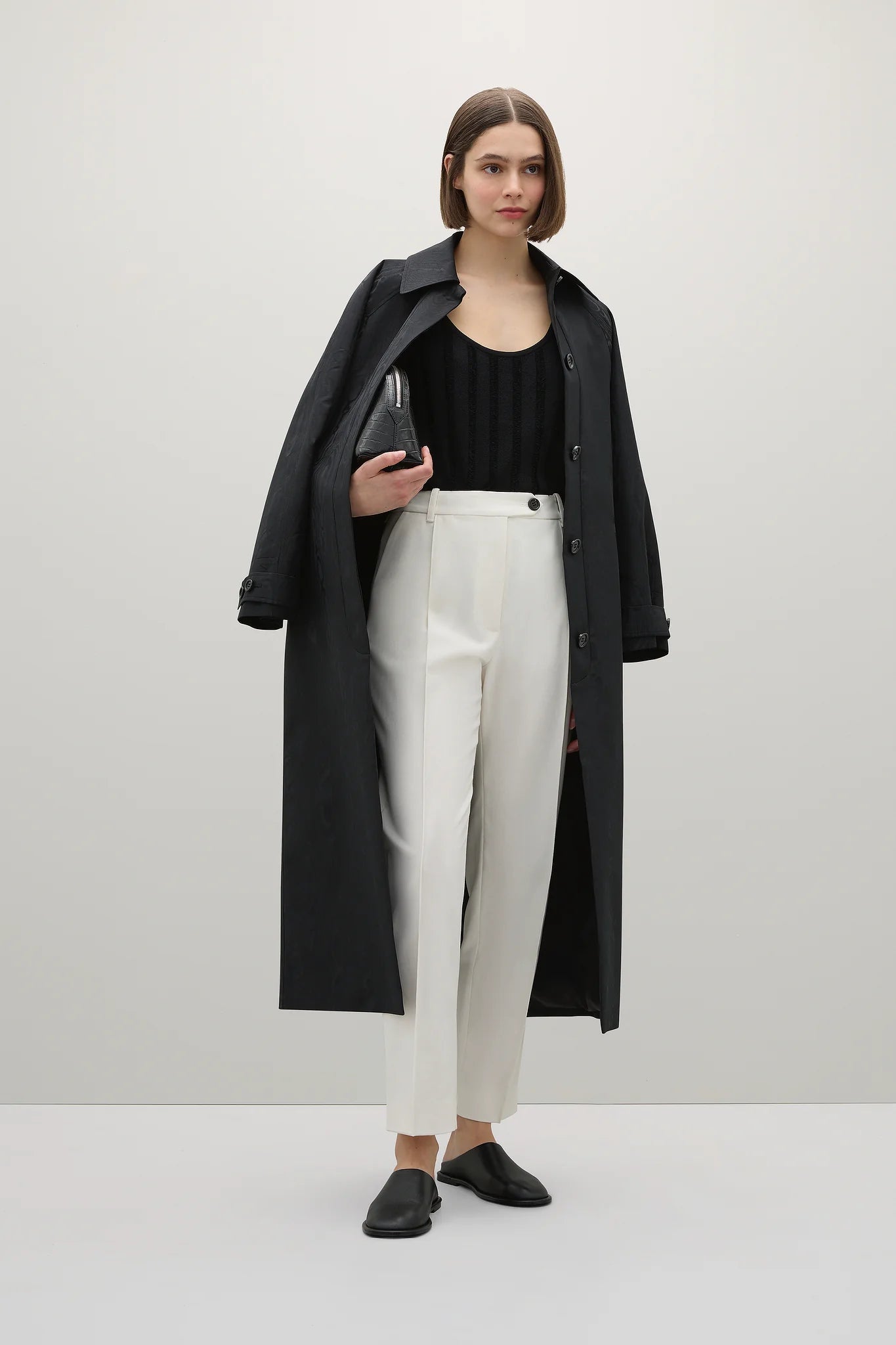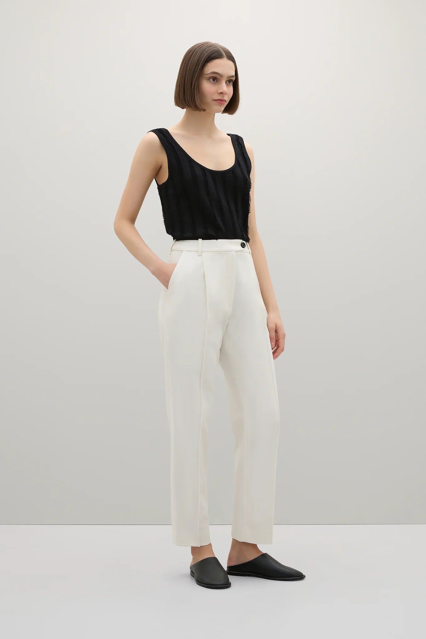 Crafted from a premium Japanese textile, the Emmet Pant features a belted waistband, side seam pockets and a pintuck through the front and back leg, tapering at the ankle for a universally flattering fit.