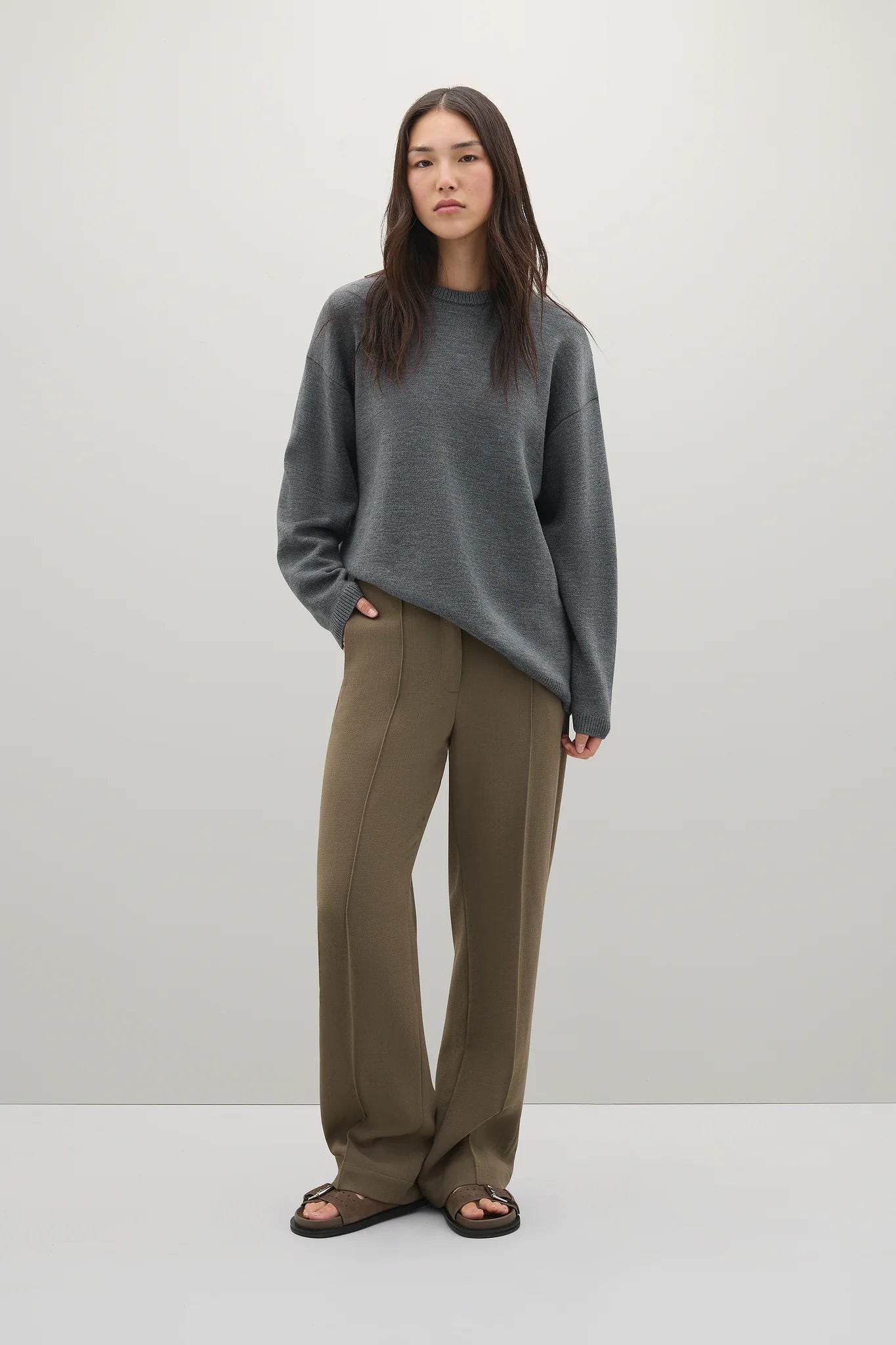 The Reid Crew Knit is a generously cut crewneck knit crafted from a luxurious merino wool blend.