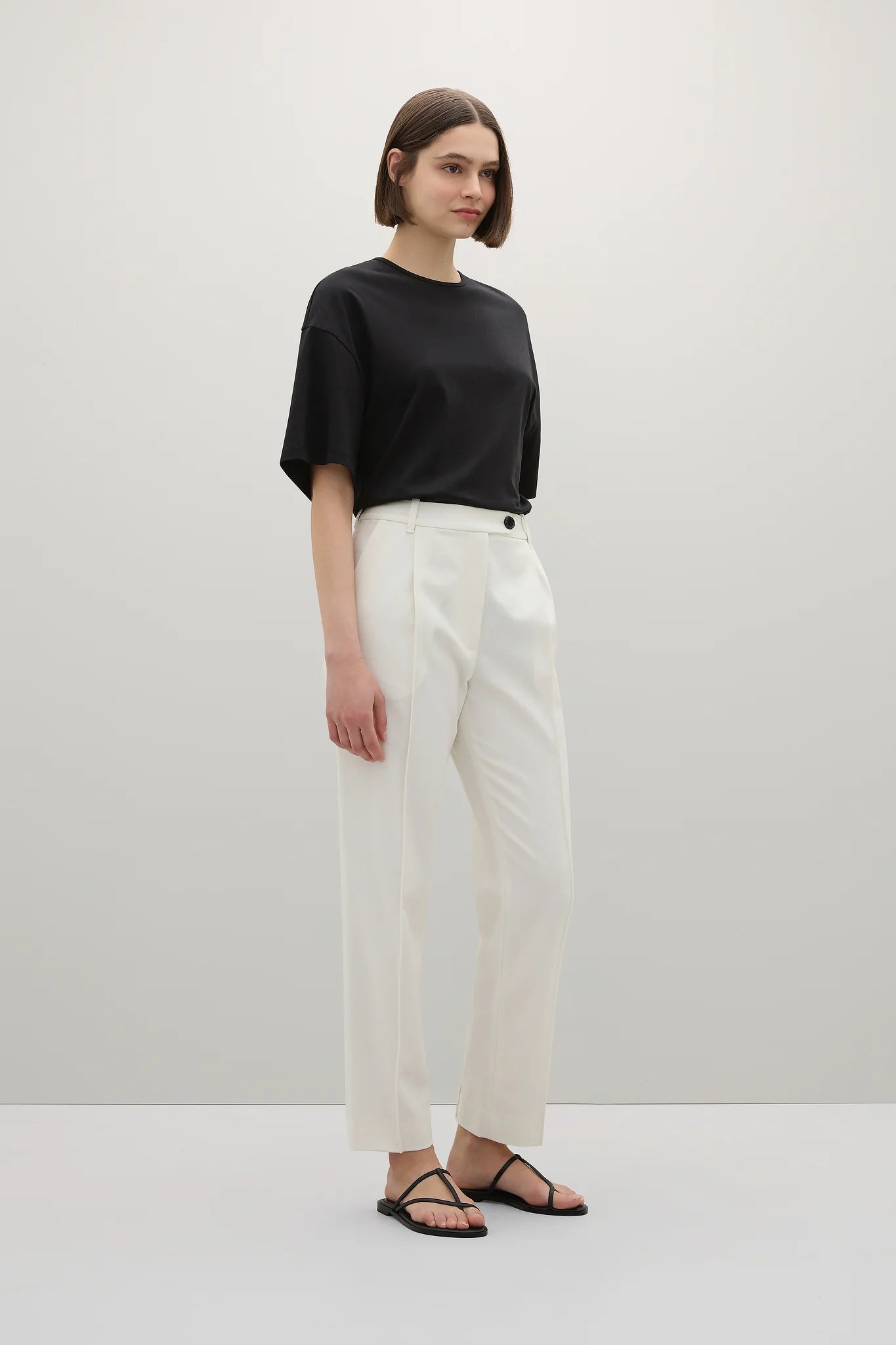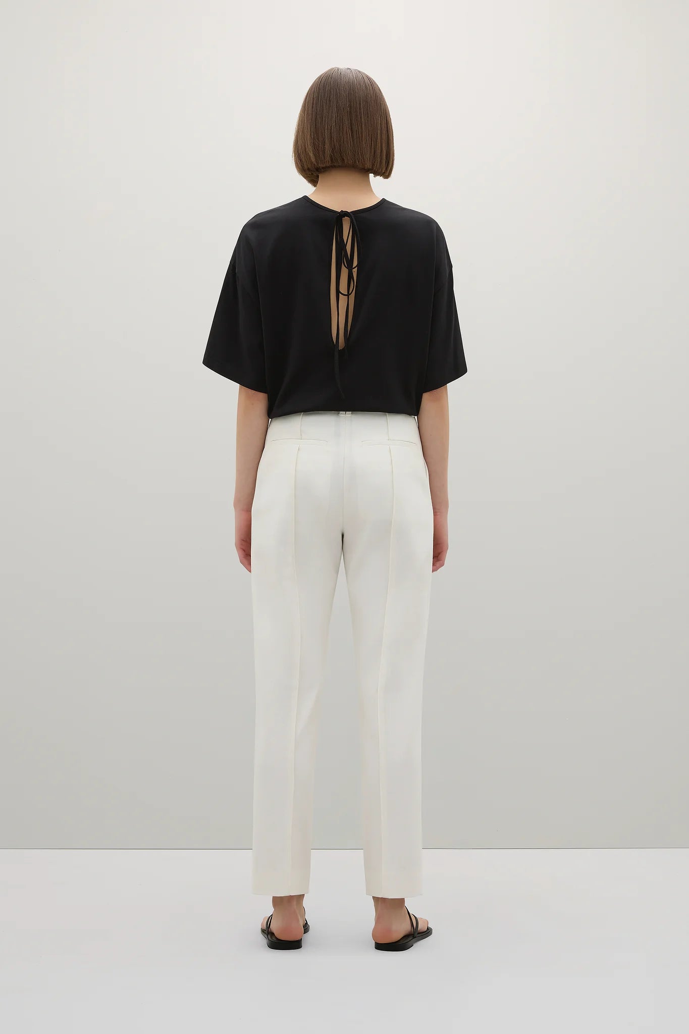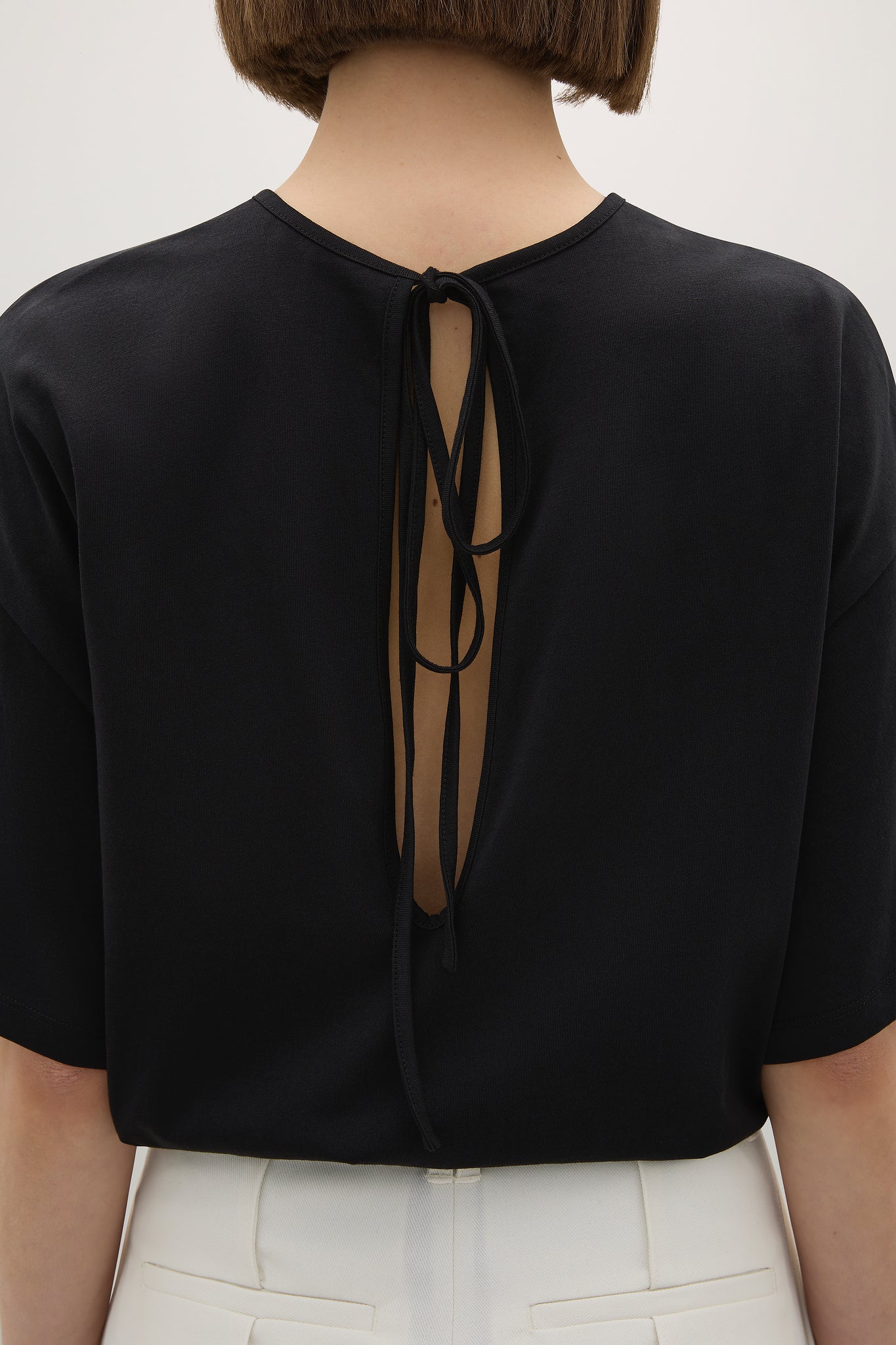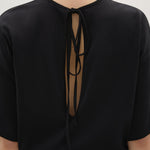 The Mika Tee is an oversized jersey T-shirt with a keyhole tie located at the back of the neck. This effortless style can be worn alone or layered for versatility when styling.
